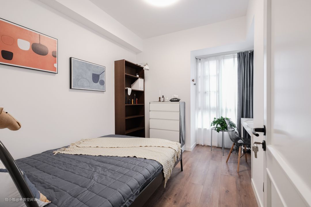 宜家购置的床,之前有考虑做榻榻米设计,但会觉得并不是很好看,而且显得空间很拥挤,索性就简简单单的布置下