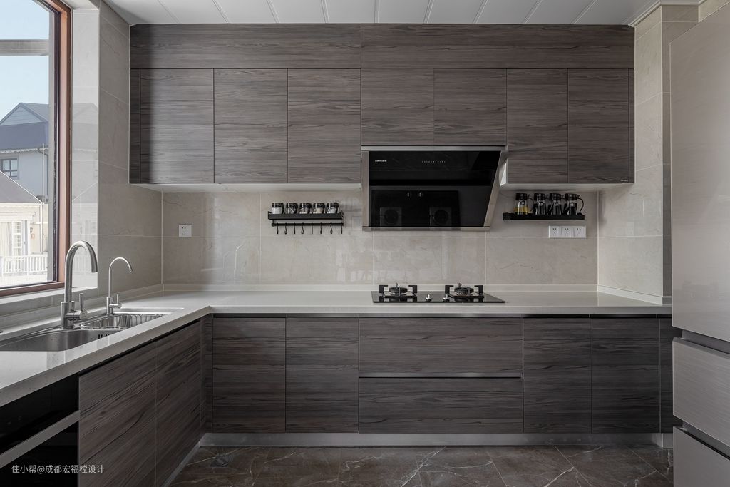 厨房与餐厅间仅玻璃吊敞门之隔,双扇打开后空间感很大气,悠闲的时光里可充当开放式厨房使用,做饭之余可和家人温暖互动。#厨房 #橱柜