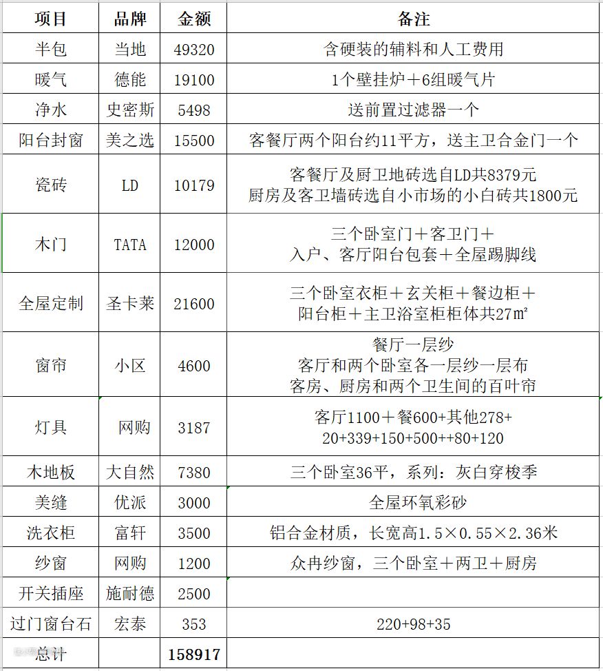 基础装修费用明细