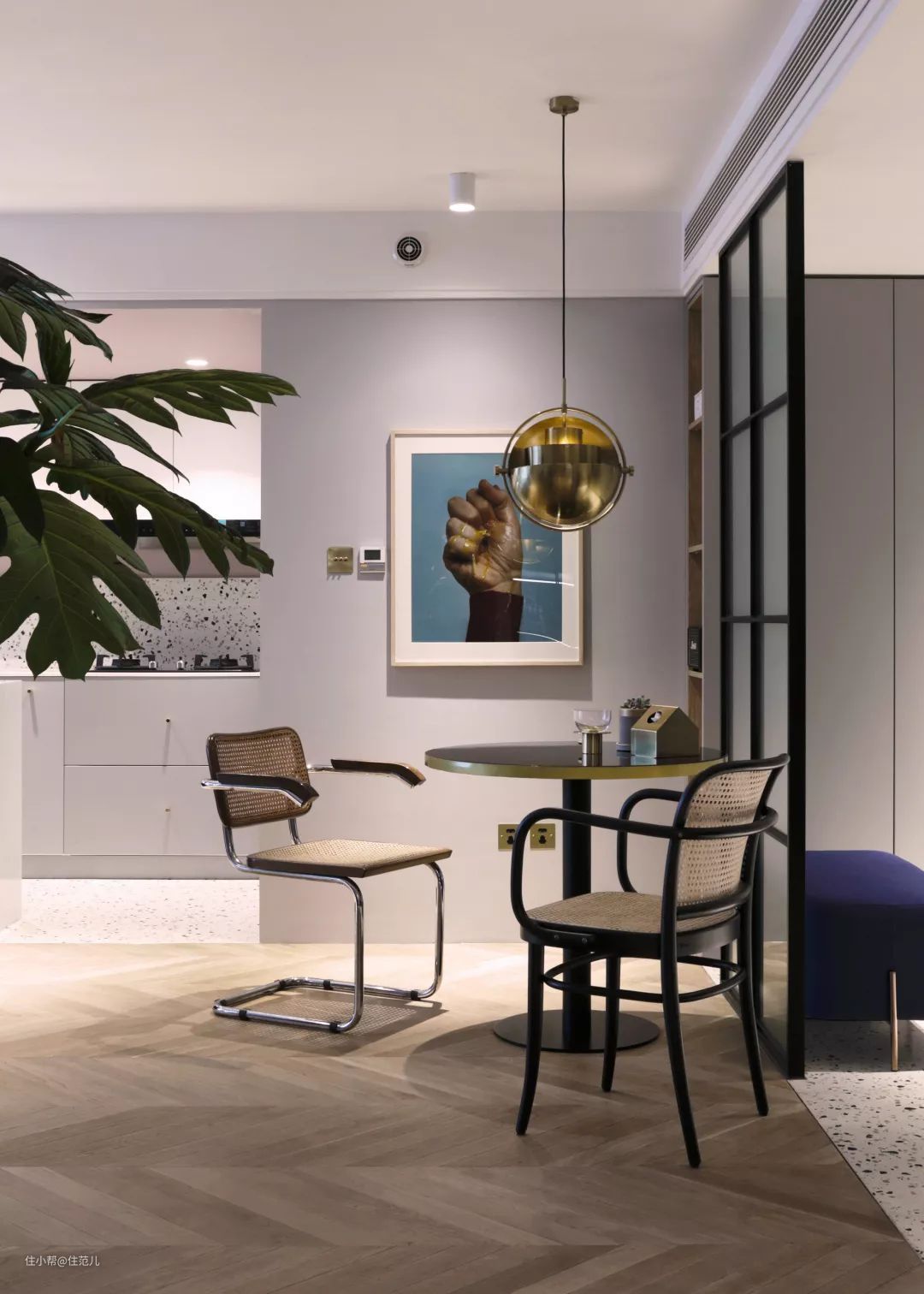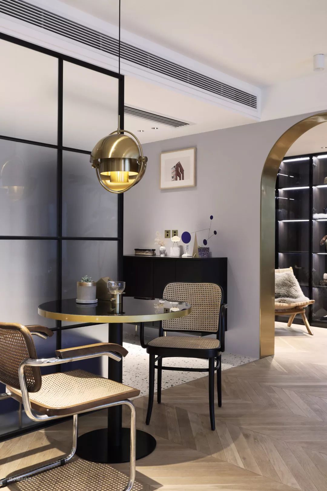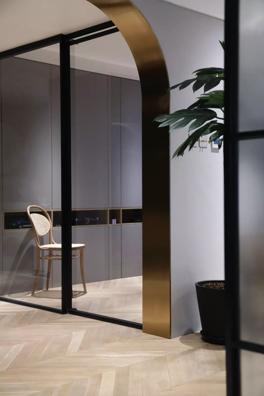 铜条收口代替普通踢脚线,设计师在细节上总能给人惊喜。