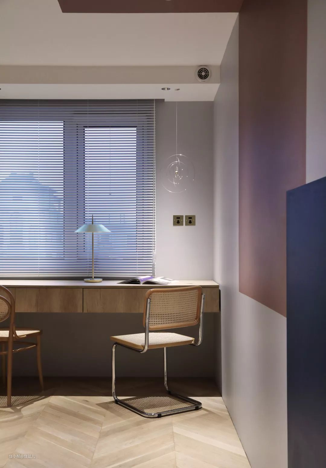 为了避免空间过于沉闷,书房的一侧墙面漆了女主喜欢的色块拼接。