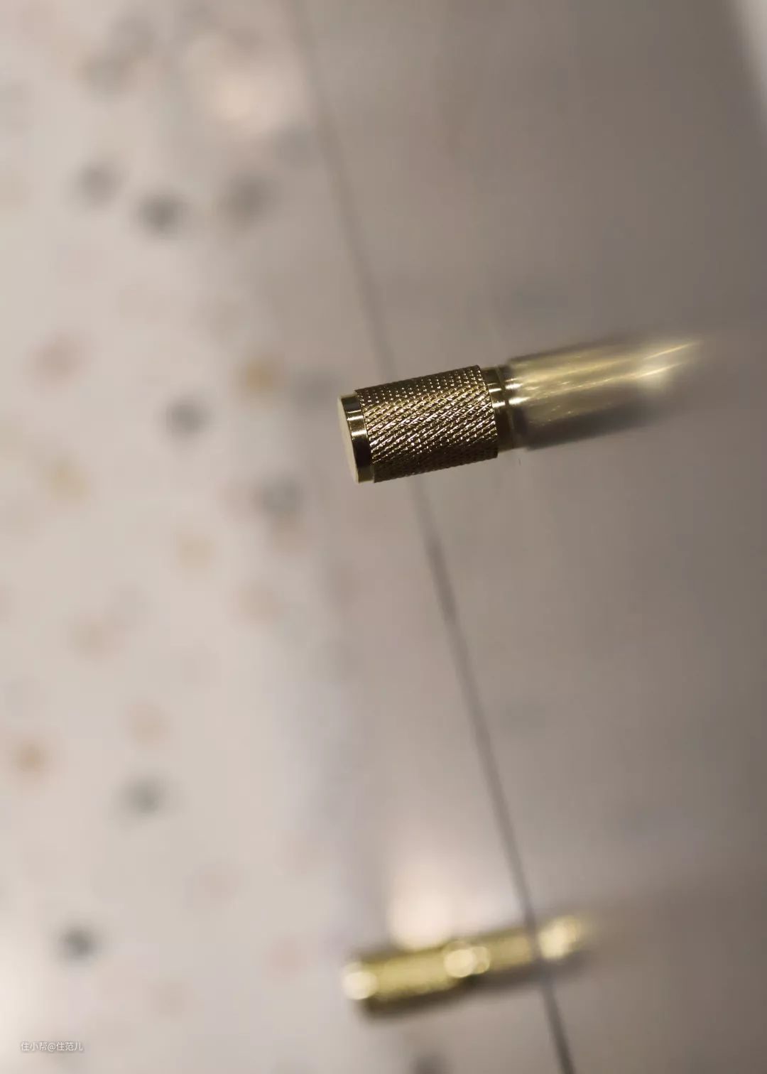 台面与台上盆采用了哑光质感的人造石,搭配黄铜色五金件,显得特别高级。