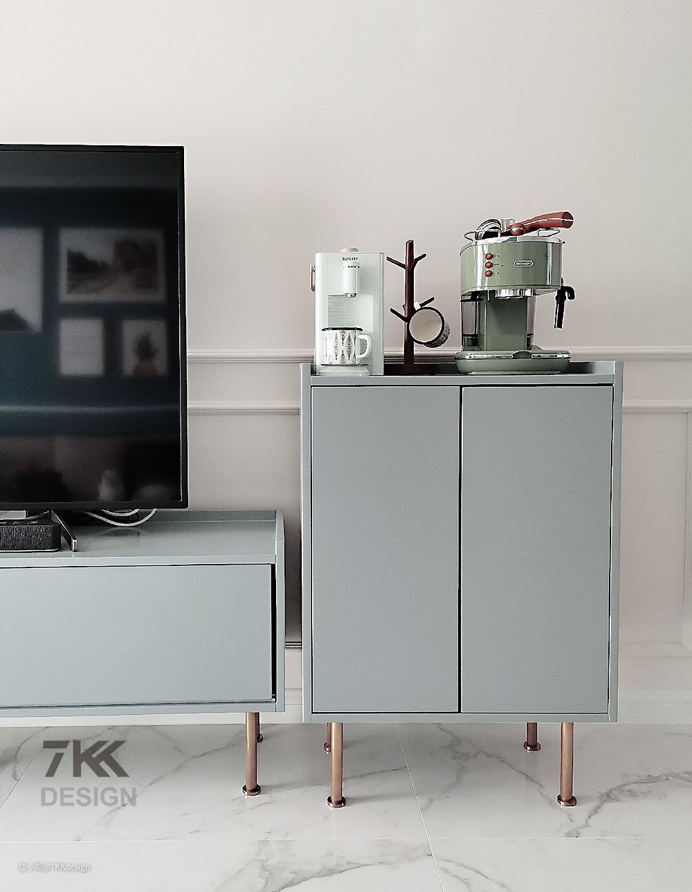 简单的电视柜+边柜搭配,简约清新,充满线条感。