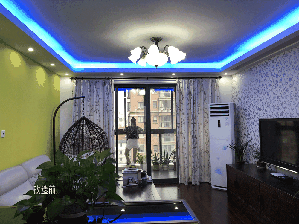 客厅改造前后对比,改造前装修比较老气,阳台和客厅是独立的空间,客厅看起来光线很暗。改造后阳台纳入客厅,增加空间感。光线更明亮,整体设计更简洁,清新,精致。