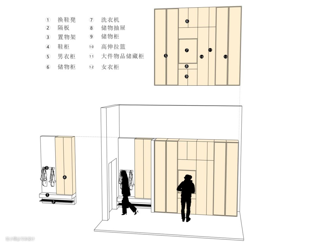 这是一张空间储物图 业主主要定期居住,不是长期居住,设计收纳方面保持适度的量。