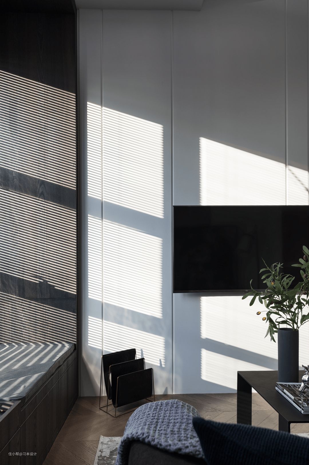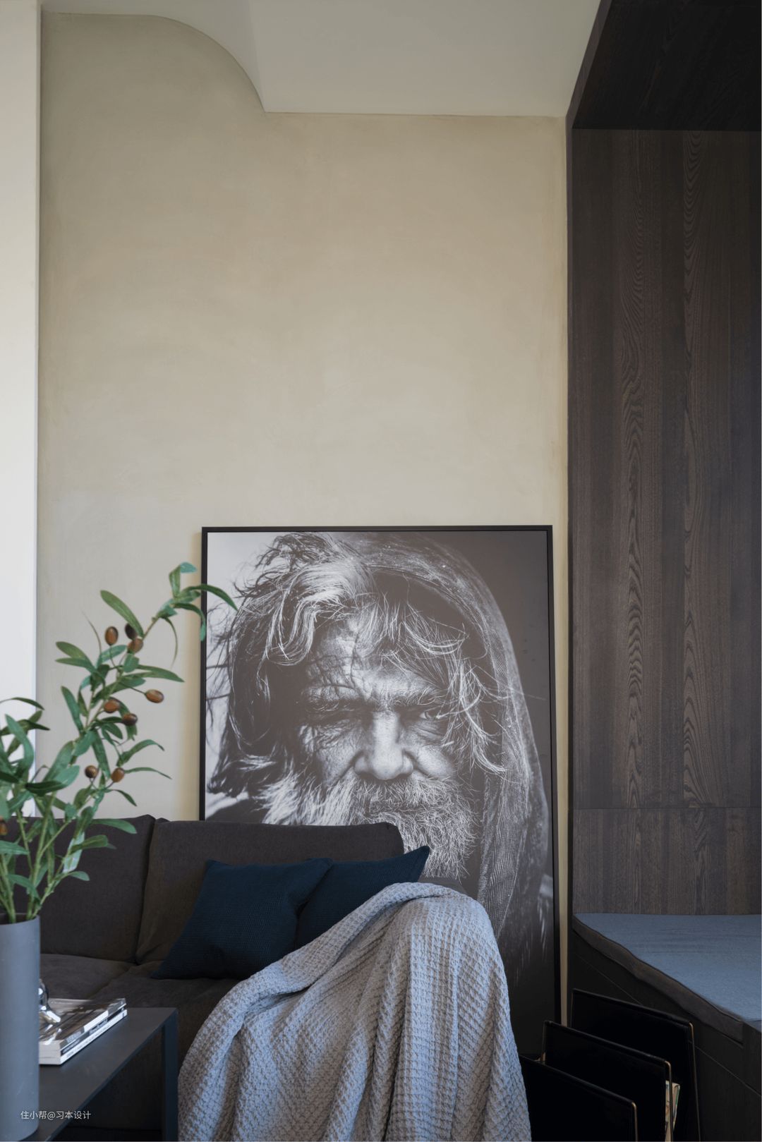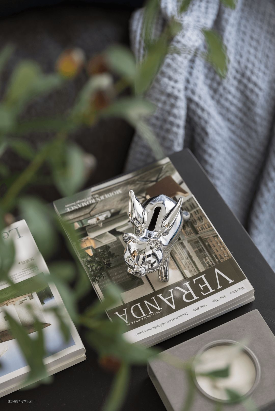 陶瓷花瓶配上橄榄枝,让空间多了一丝绿意。