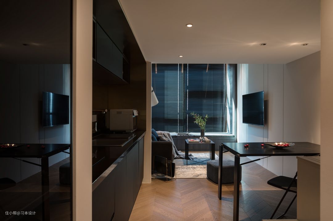 业主要求 : 独立淋浴房/独立卫生间/深色调/剩下你帮我想,我都可以,我尊重你的设计想法! 对 就是这么简单!有史以来是我接待业主中,年龄差最大,设计沟通最简单的业主! 通过对他了解:首先他经常出差,合肥本地已有二套较大的房子了,之所以装修这套房子,主要考虑一下几点。第一:距离南站特别近,方便出差后回来休息。第二:周边商业综合体较多。第三:附近有较大公园。第四:南站联通地铁,地铁联通商业综合体,商业综合体是连他的小公寓的。用业主的话:经常在外习惯了这种方便,以后退休了,再考虑清静养老的环境!