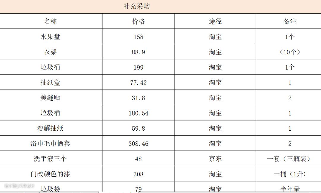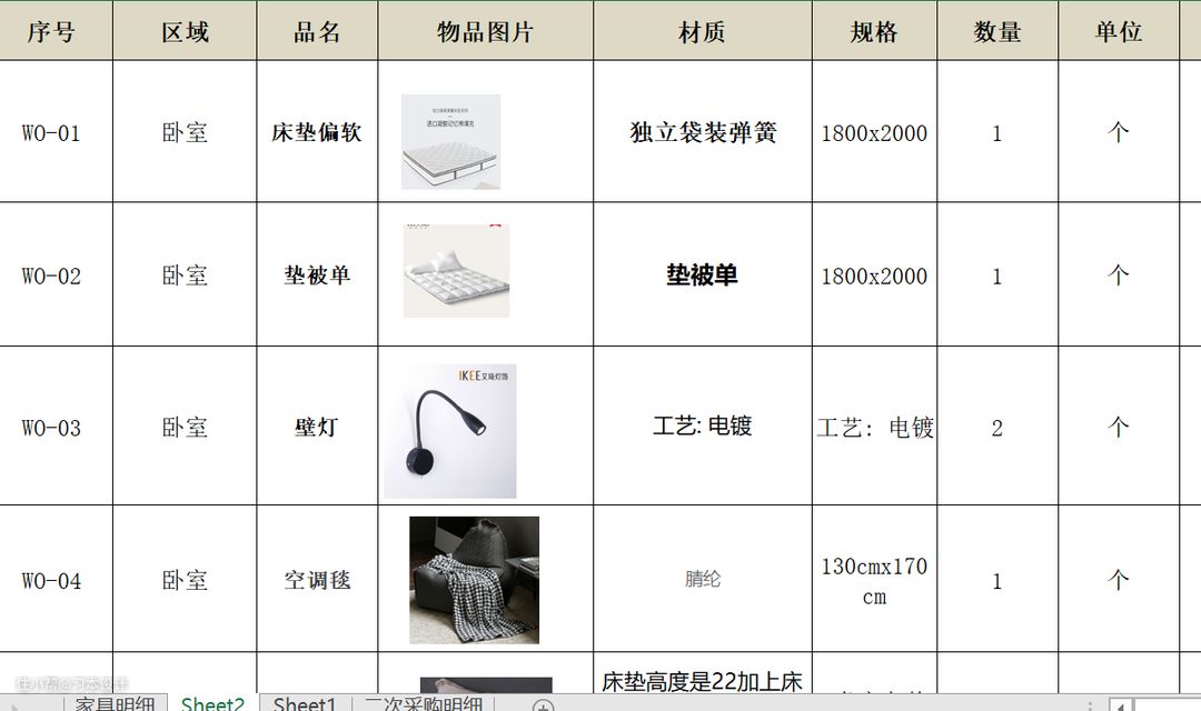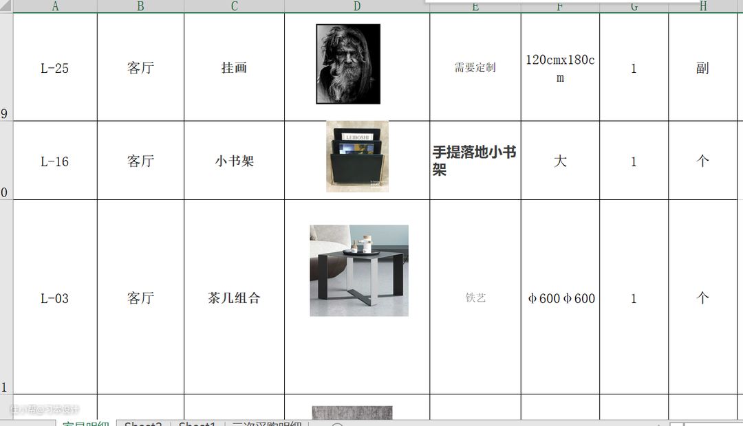 软装表格分享: