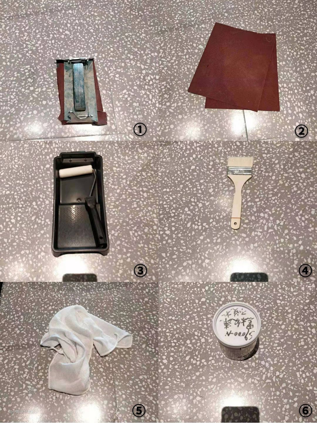 黑板漆改色详细步骤 工具:福乐阁黑板漆小桶0.7L (正 常大门]完全够用)抹布美纹纸保鲜膜 小号滚筒及羊毛刷400号砂纸砂纸夹(必备)口罩电吹风 施工步骤: 1.干抹布把门上浮灰擦干净 2.用保鲜膜及美纹纸保护好门锁及门框3.砂纸打磨一-湿抹布擦去粉尘门]体保证清洁一一电吹风调到冷风吹干水渍--循环n遍门体表面粗糙无光泽为佳 4.室内温度保证在10度以上关闭门窗保证没有过堂风开始涂刷黑板漆 5.滚筒少量蘸漆从上至下涂刷一-小号毛刷修补边角--循环3至4遍 6.间隔6小时以.上涂刷第二遍重复第5步骤7.最后一遍涂刷结束后撕掉保鲜膜及美纹纸毛刷修补边角 切记:黑板漆刷完未干千万不能开窗通风否则会出现荔枝纹影响效果 文字来自住友Ramuy