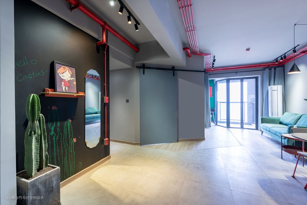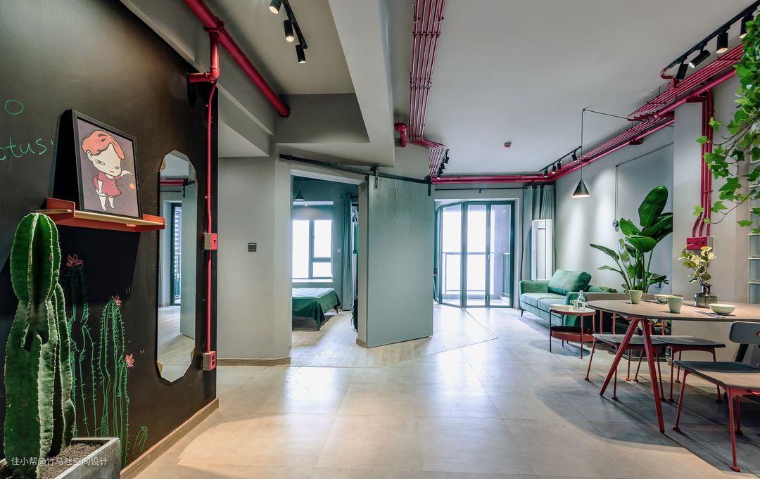 整个家的亮点就在于工业元素“红色管线”。