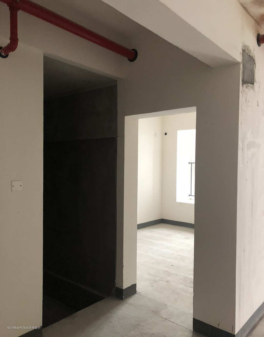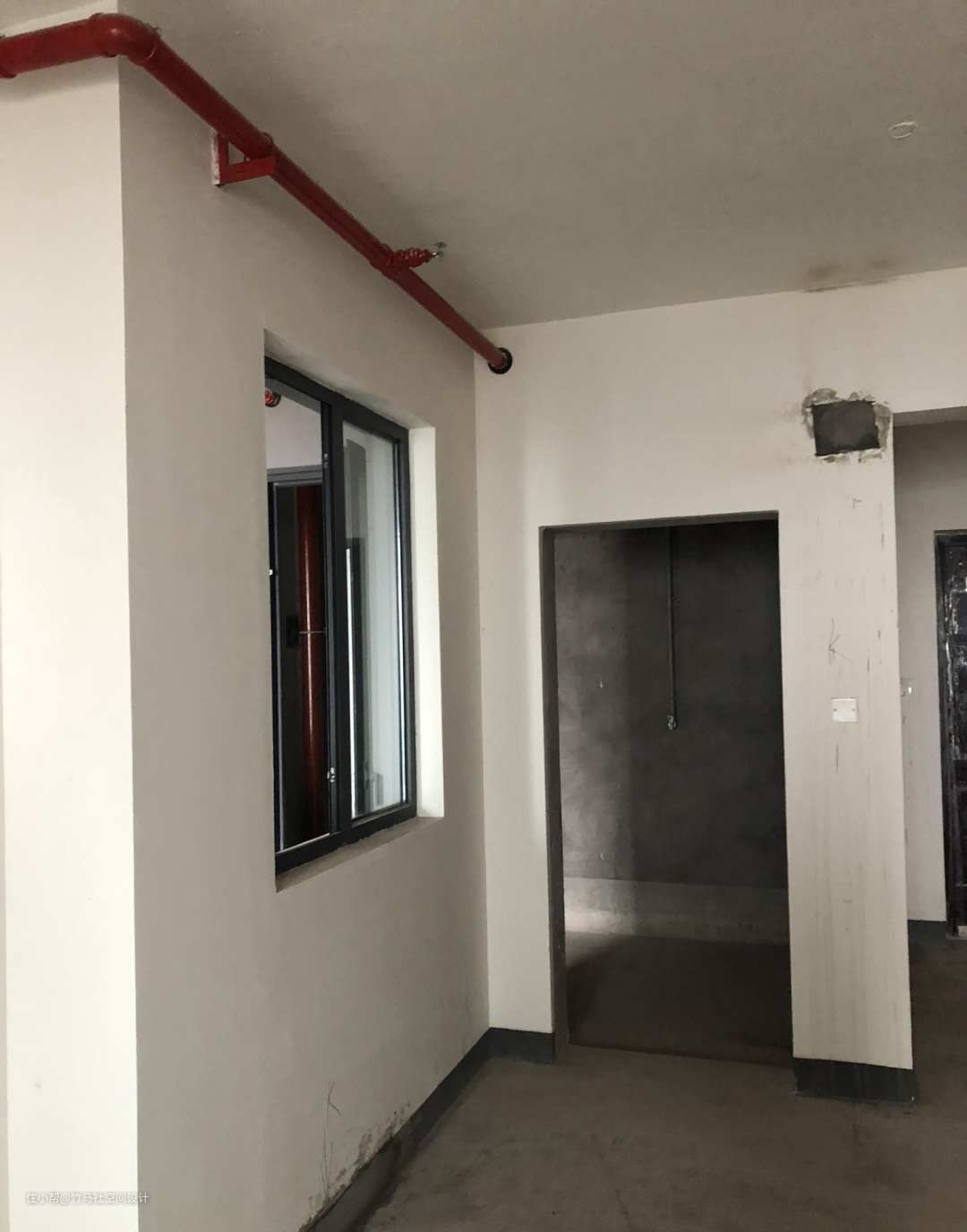 贯穿全屋的红色消防水管和多堵隔墙让新房变得不那么赏心悦目。