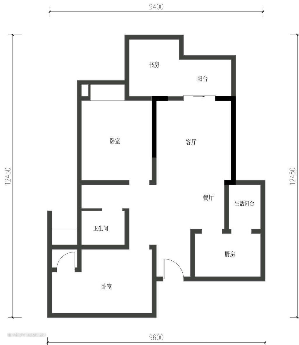 书房需要出阳台才能到达,十分不合理。