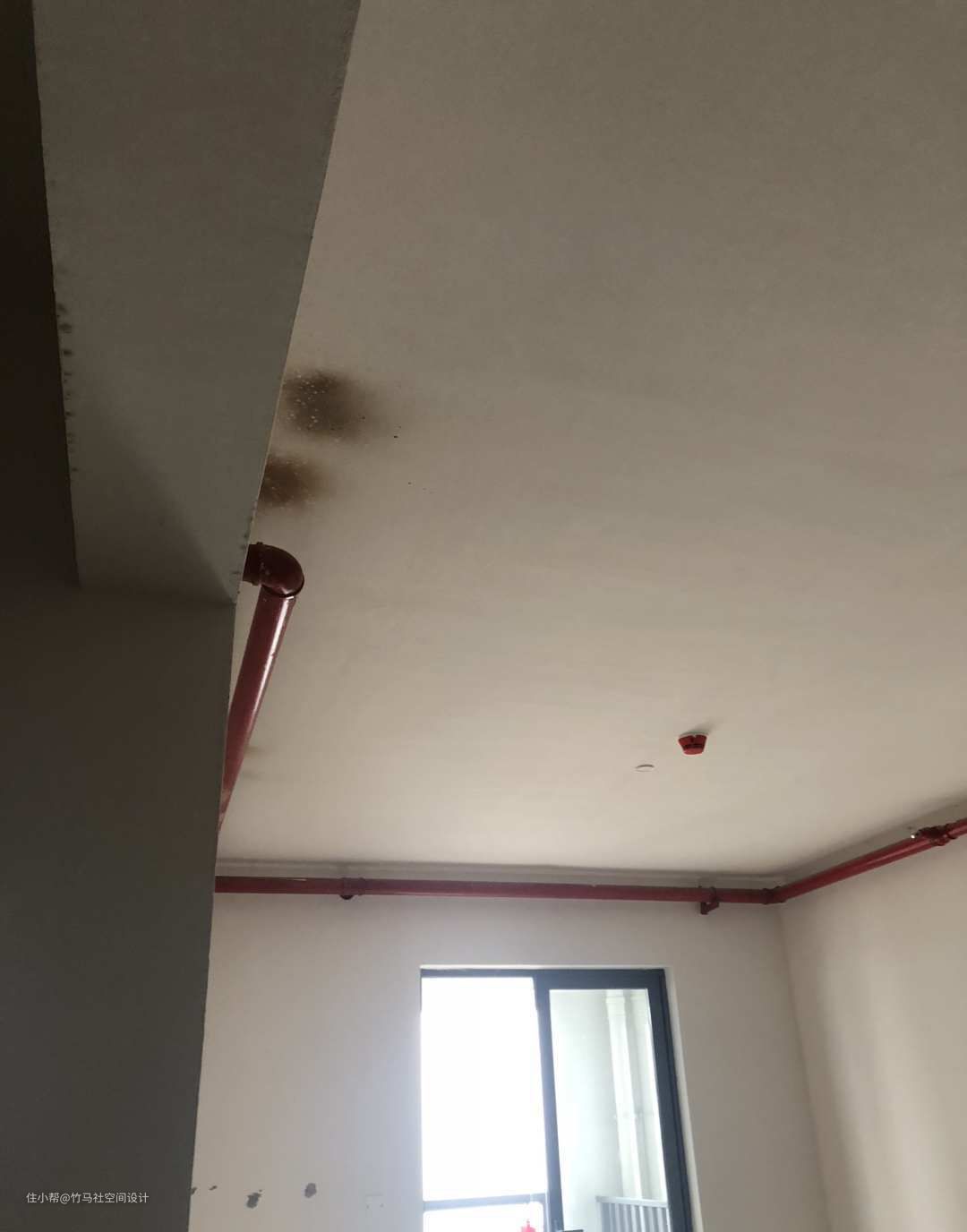 本该高兴的事情却有点郁闷。不但现实中的房子和想象中的不太一样,房间布局有些奇怪,最令人傻眼的是红色消防管道顺着房顶边缘排进了每一间房间。