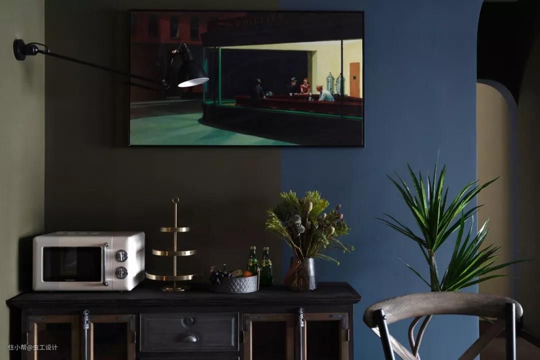 灯光开启的时候,与画里面的光氛围完美重合,整个空间与画好像产生了关联,使画面更加生动有趣。