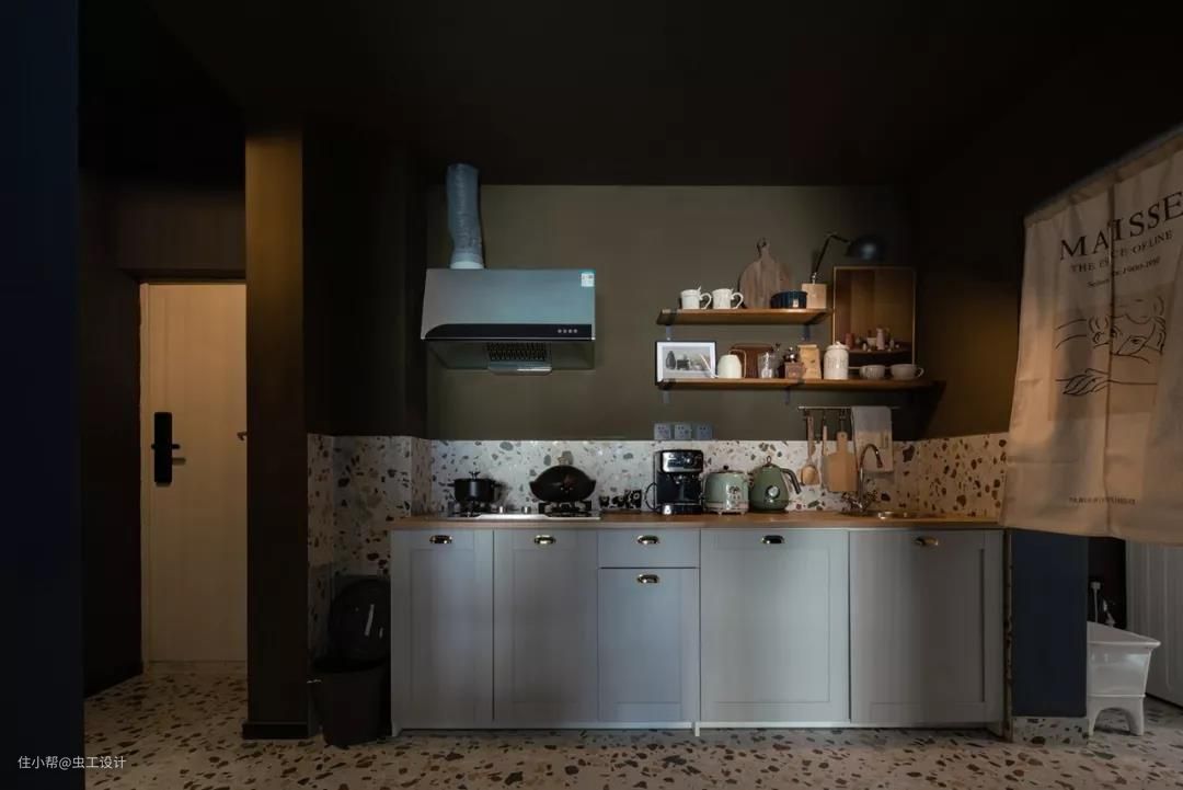 颜值与性价比极具的宜家2.4米成品橱柜,总价不到3000,针对极少频率煮饭的民宿来说是相当的够用了。
