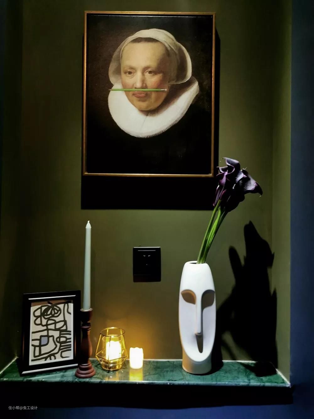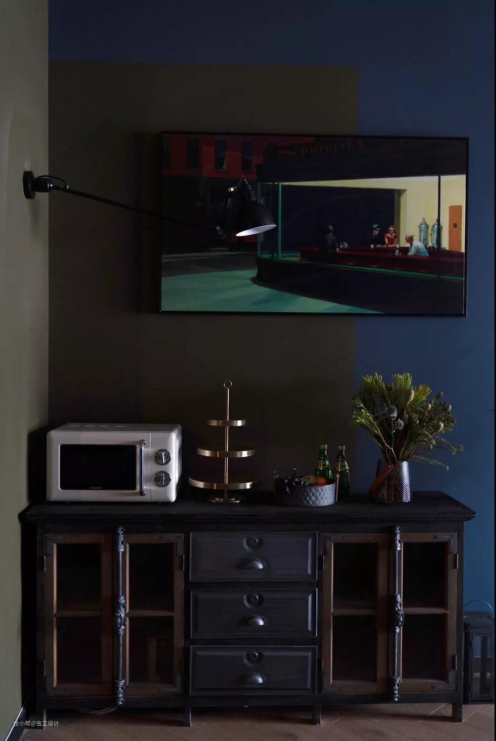 灯光开启的时候,与画里面的光氛围完美重合,整个空间与画好像产生了关联,使画面更加生动有趣。