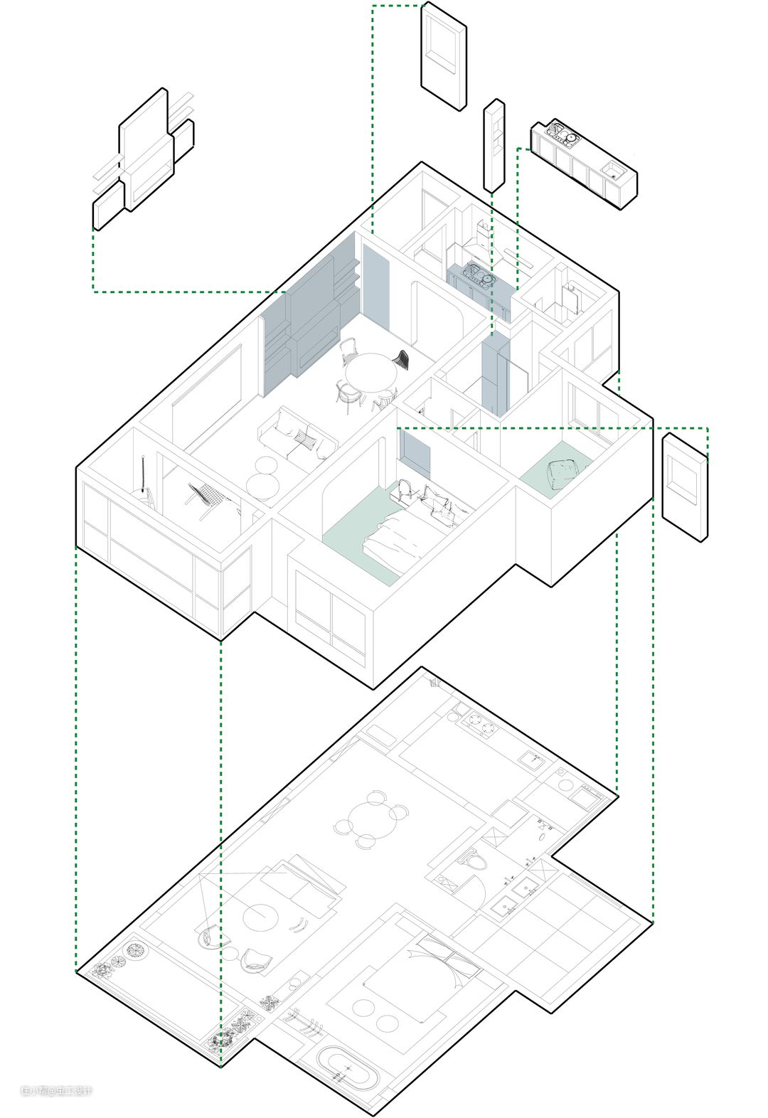 空间轴测图,可以看清空间的整个构成关系