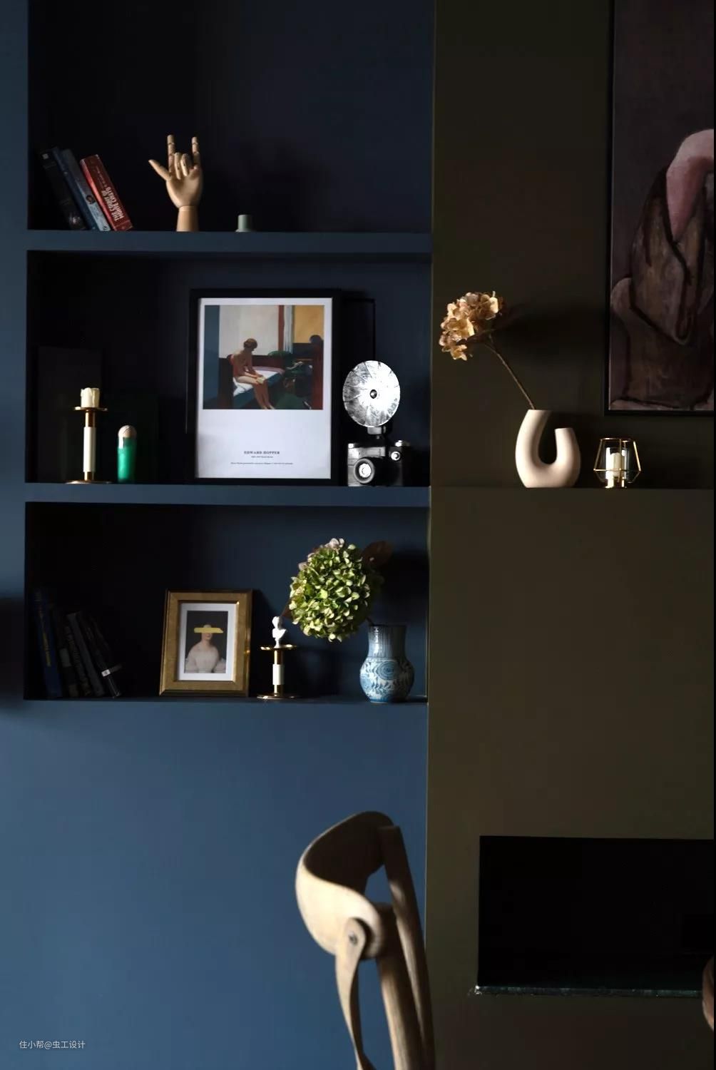 用壁龛做收纳,以及利用墙裙厚度做展示墙