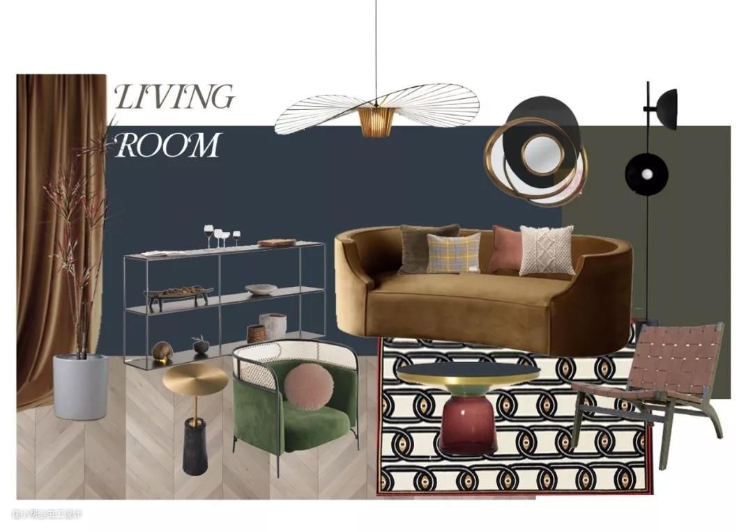 这是客户喜欢的另外一个调性,糅合了A.B.C三种,整体偏向复古、休闲、精致、考究的空间氛围。