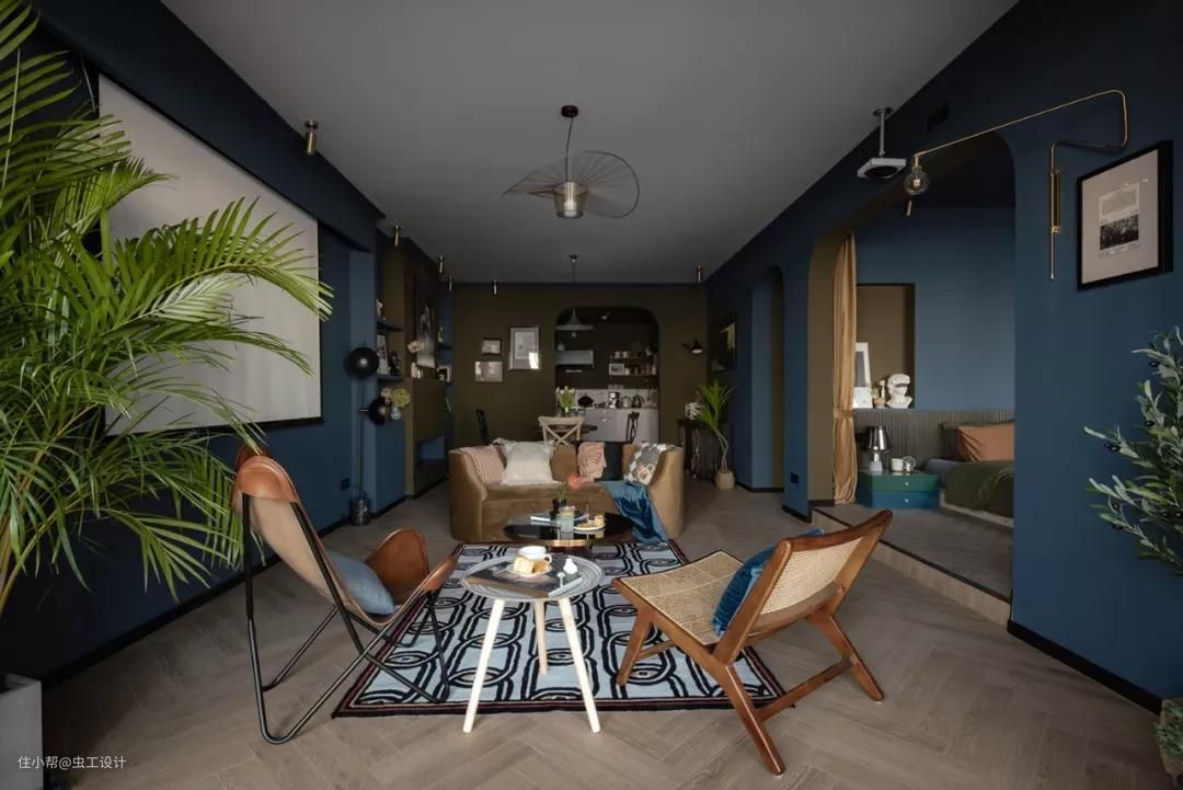 色号:深蓝色号:21BB 12/077 深橄榄绿色号:48YY 12/123 浅米灰:30YY 72/018(客餐厅区域的顶面不是纯白色,跟墙面色搭配更为柔和)