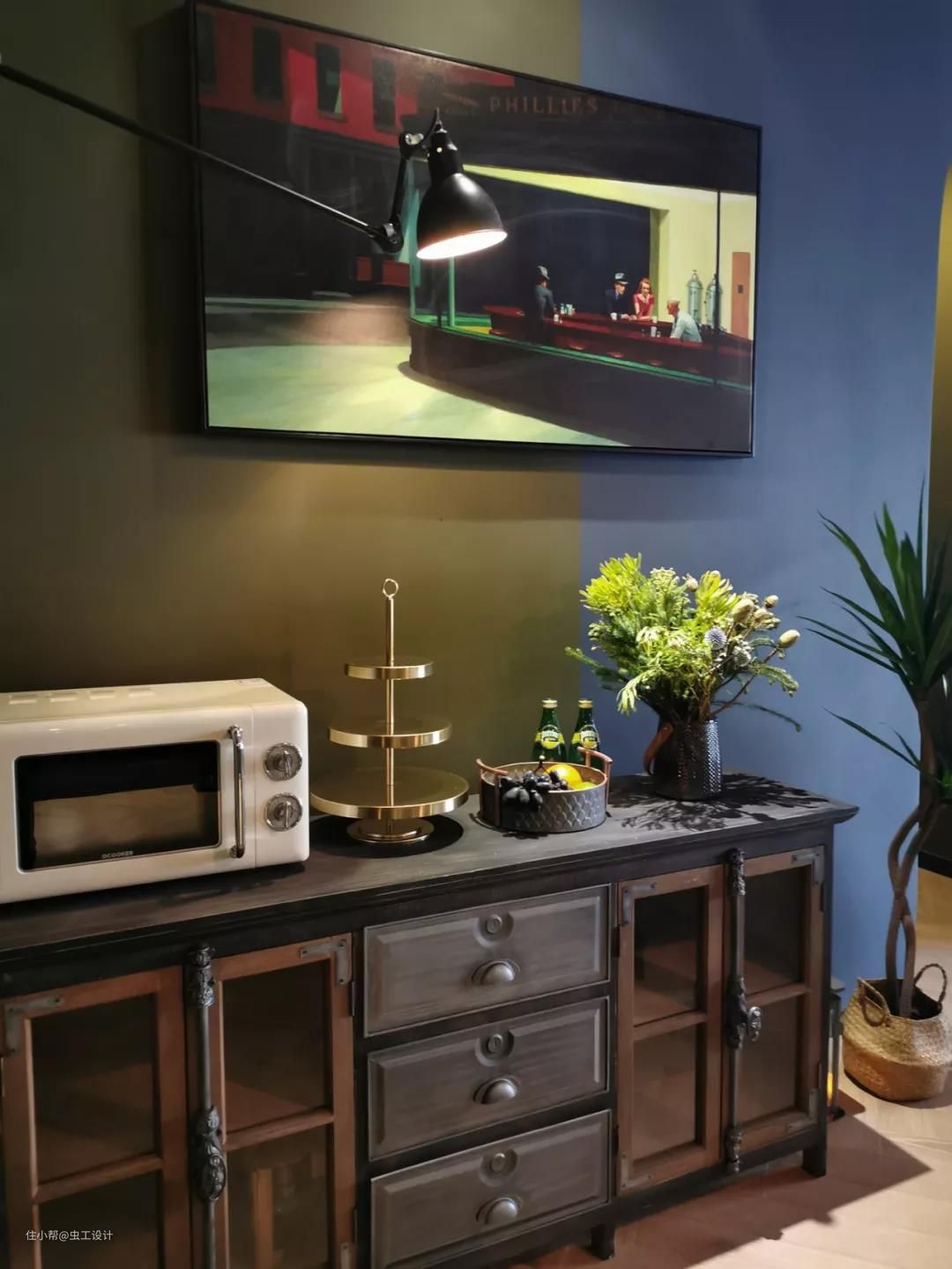 与整体氛围比较融洽的复古餐边柜与微波炉
