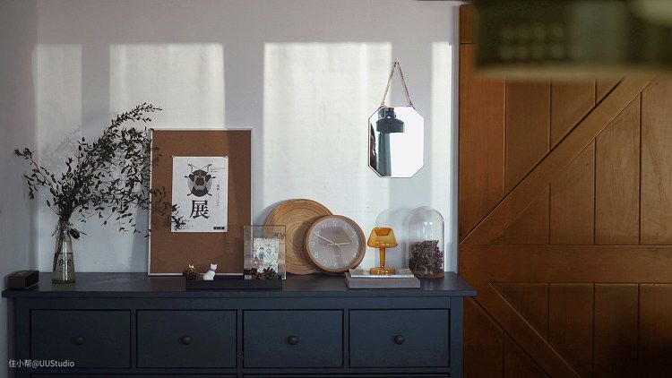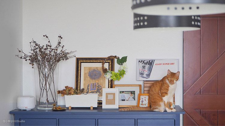 △ 谷仓门背后便是新增整墙后的储藏室(及 UU 的停车场)。餐边「IKEA」“汉尼斯 八斗抽屉柜”买的时候,万先生还问里面放什么呢?没什么可放的啊……结果现在满满当当,各种储藏……(自带猫咪装饰品)