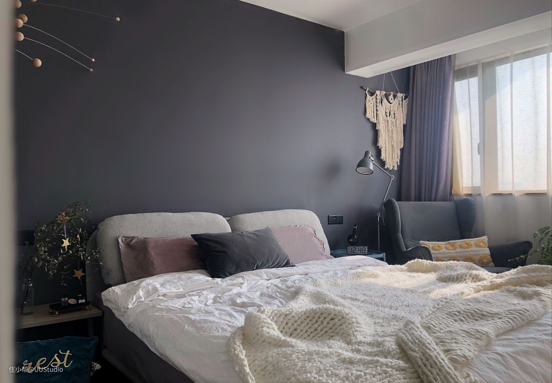 △ 床换成「造作」的「云团床」,造型更简约,更易铺床笠。