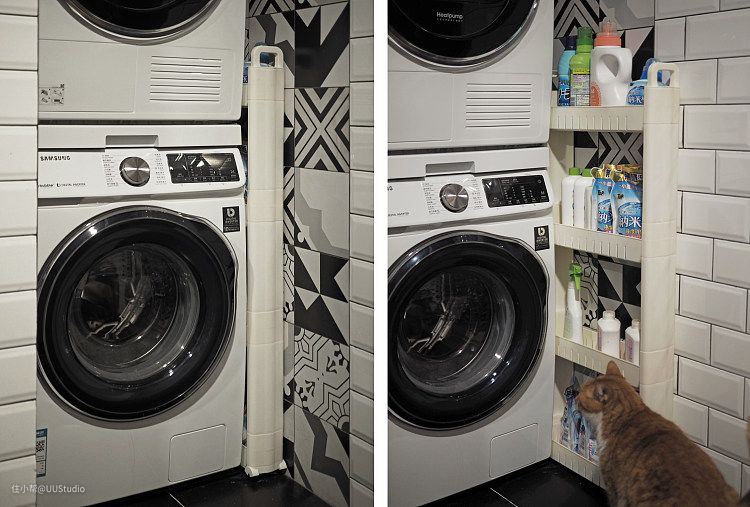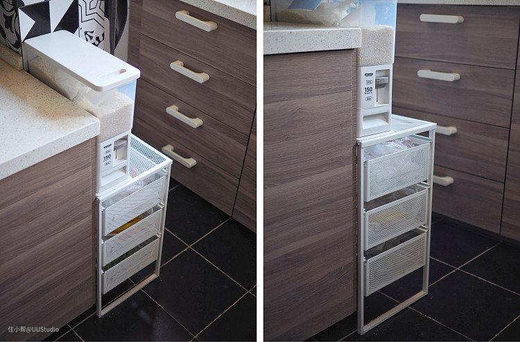 △ 小提示:不管是洗衣机旁的夹缝还是厨房的一些夹缝,都可以使用这种夹缝窄推车,位置合理又方便。