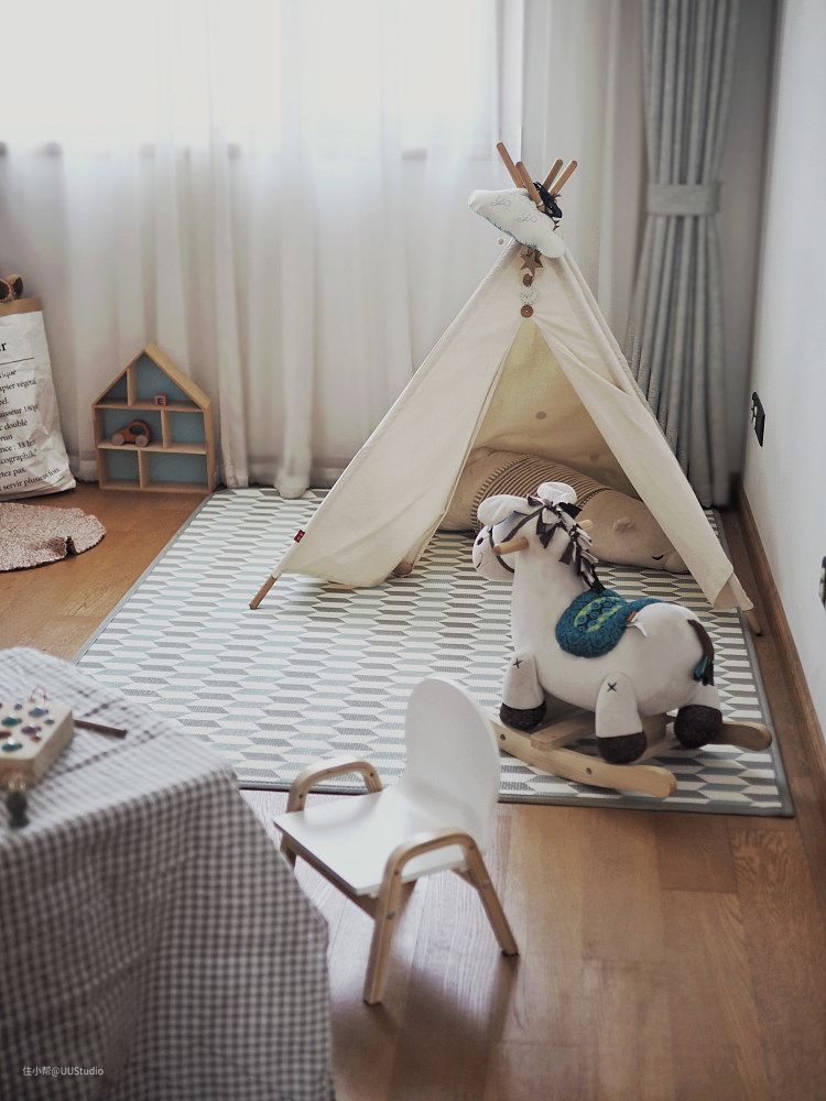 △ 帐篷是 UU 刚出生朋友就送她的礼物,伴随着她的躲猫猫事业长大。「B.Toys」的摇摇马,「Morden House」的地垫。小朋友真的是一个鸡年出生的「碎钞鸡」。