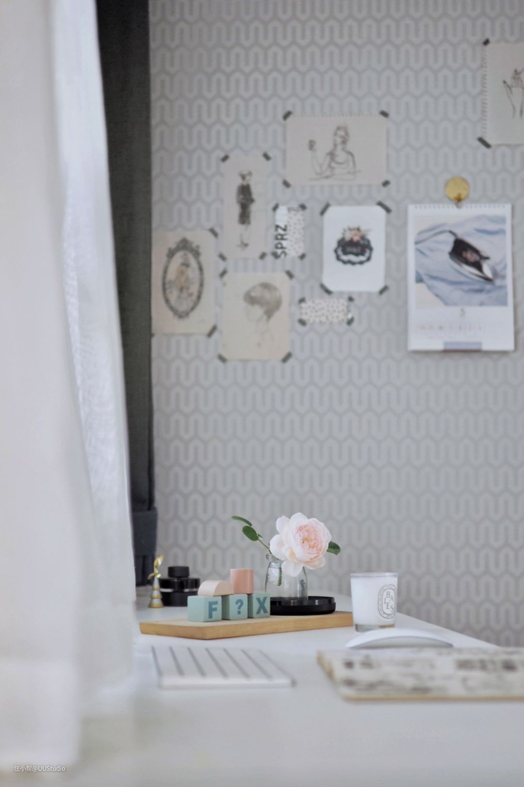 △ 壁纸是最早看到北欧家装里一见钟情的纹样……翻遍大淘宝终于找到。南阳台的月季开花了,采下一朵留香书房。