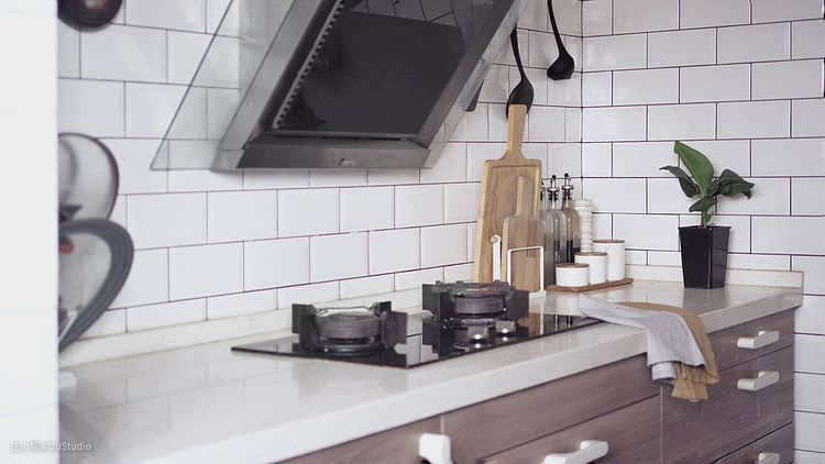 △ 厨房橱柜一开始就踩了个大坑,选了本地知名的 WL 橱柜,态度消极、设计草率,即使水电都已按图完成,还是果断改用了「IKEA」。「IKEA」最终的这套U形台用起来各种舒服,低柜有2种高度:操作区、洗碗区高 90 cm 左右(出于对称美学,左侧没做,有点后悔),烹饪区高 80 cm 左右。吊柜、微波炉等高度也都很符合人体工学。此外,25 年质保、柜内的模块化设计、隐藏灯带、抽屉能完全拉出、收纳配件等都让我们用的很满意。