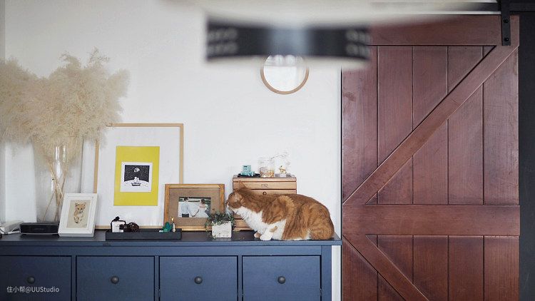 △ 谷仓门背后便是新增整墙后的储藏室(及 UU 的停车场)。餐边「IKEA」“汉尼斯 八斗抽屉柜”买的时候,万先生还问里面放什么呢?没什么可放的啊……结果现在满满当当,各种储藏……(自带猫咪装饰品)