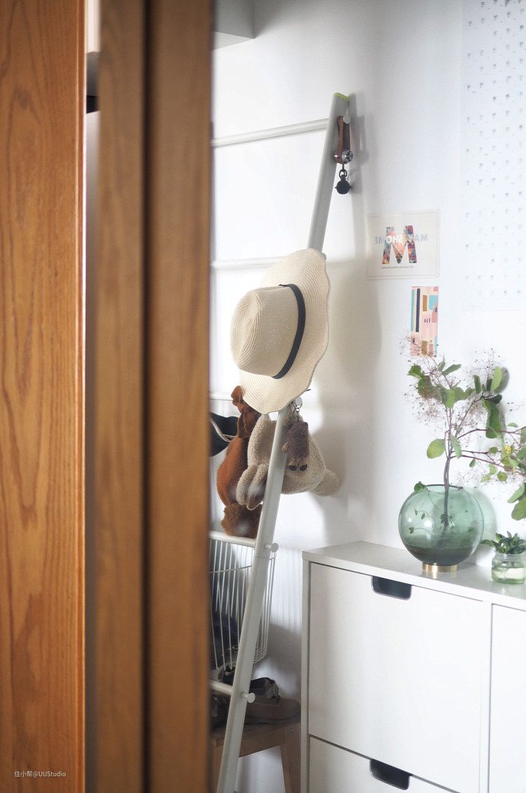 △ 变成三口之家后,薄鞋柜便不适合 mini 脚丫的 UU。「IKEA」梯形置物架下加了「IKEA」“贝卡姆 踏脚凳”(只要¥69),专门用来收纳 UU 的常用鞋。随着她的成长,现在可以自己坐在第一层上穿鞋,脱鞋放在踏脚凳上,高度也很友好。
