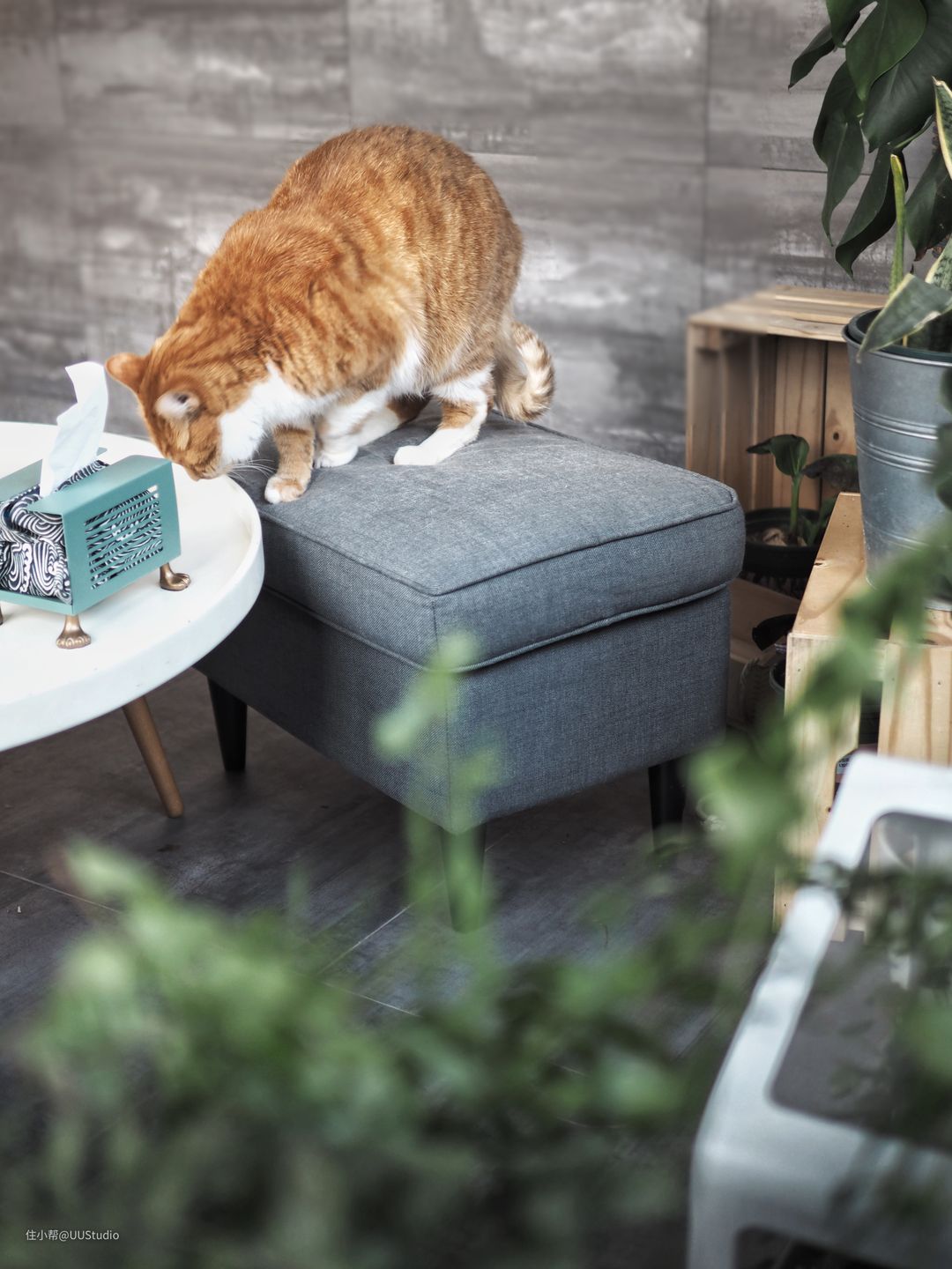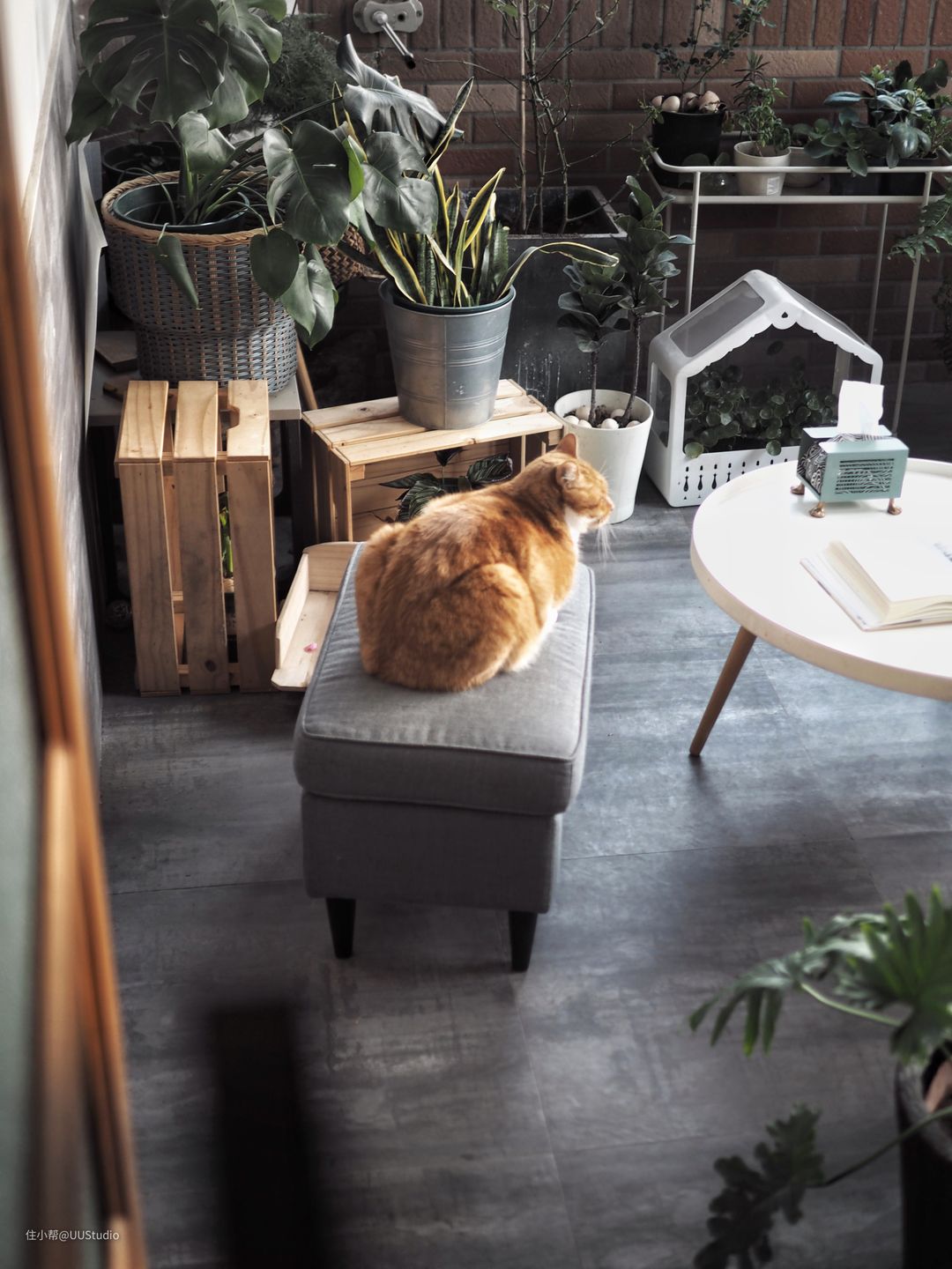 △ 白白的猫厕所、猫粮等都放在南阳台,通风优秀,是家里放置猫厕所的最佳位置,就藏在单人椅后面。毕竟一只单手就能开门的肥猫,多开几道门也并不困难,特别是现在还有热心南京市民 UU 的帮助。🤷