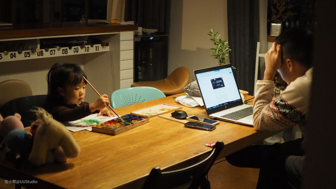 △ 就像很多外国电影里一样,餐厅逐渐延展成家的活动核心区。除了一家人在这里享受美食美酒音乐、与亲朋们小聚交心;万先生还喜欢在餐桌办公,UU 也时常在餐桌上玩玩具、画画、做手工。
