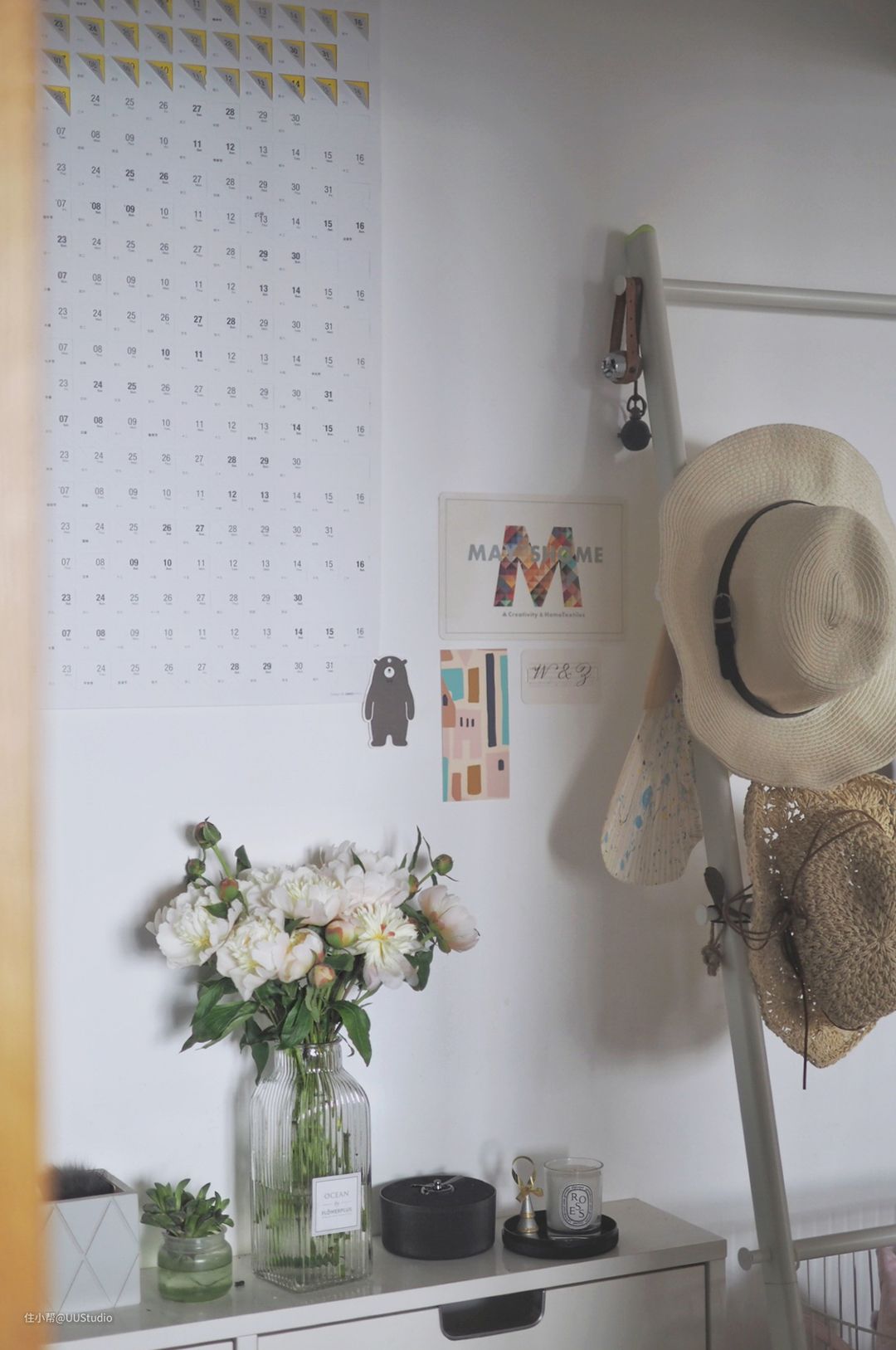△ 后期,夏天会买芍药。搭配喜欢的艺术玻璃花瓶,伴着「diptyque」的香薰蜡烛香气,入门的瞬间嗅到的轻松气息。电箱遮挡也换成了「纸因你」的挂历,每天出门折开新的一日,迎接新的一天,看得见的时间流逝。钥匙盒也换成「H&M Home」的菱纹木盒,增加一点活泼。