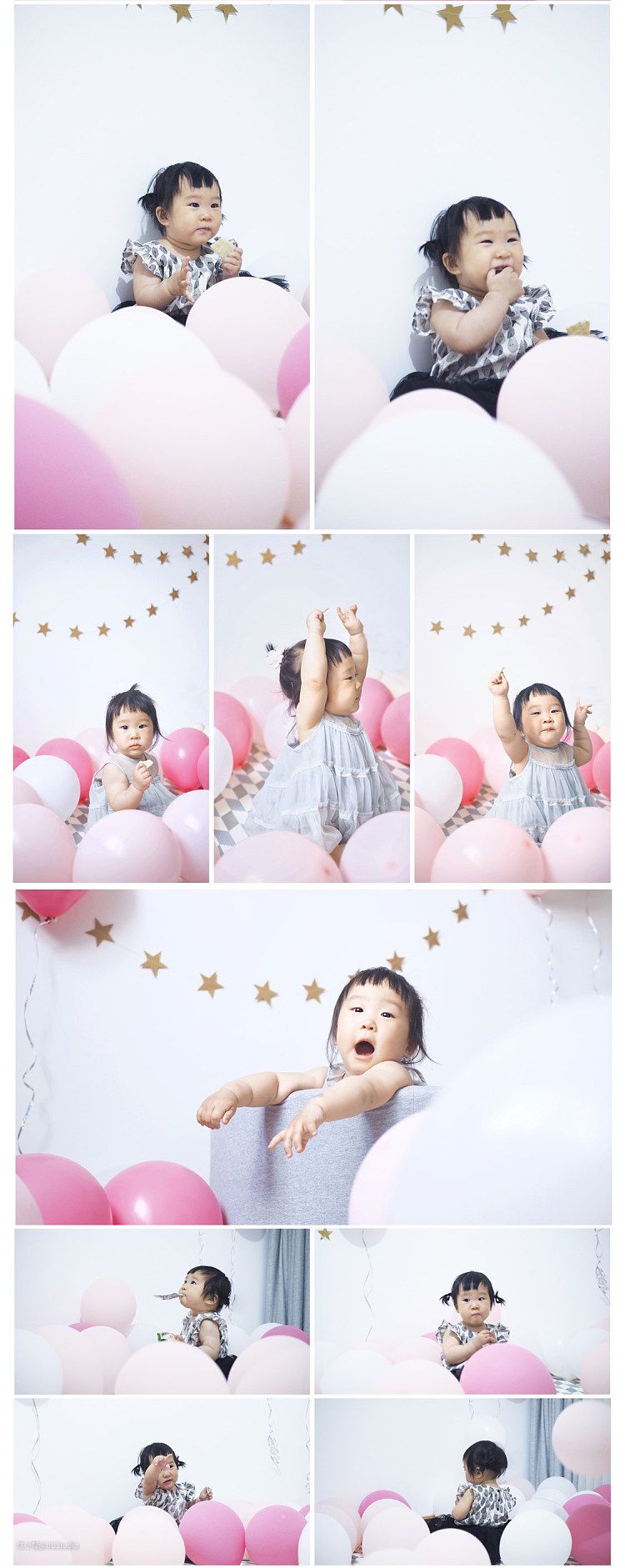△ UU 一岁生日,在儿童房布景拍的纪念照片。