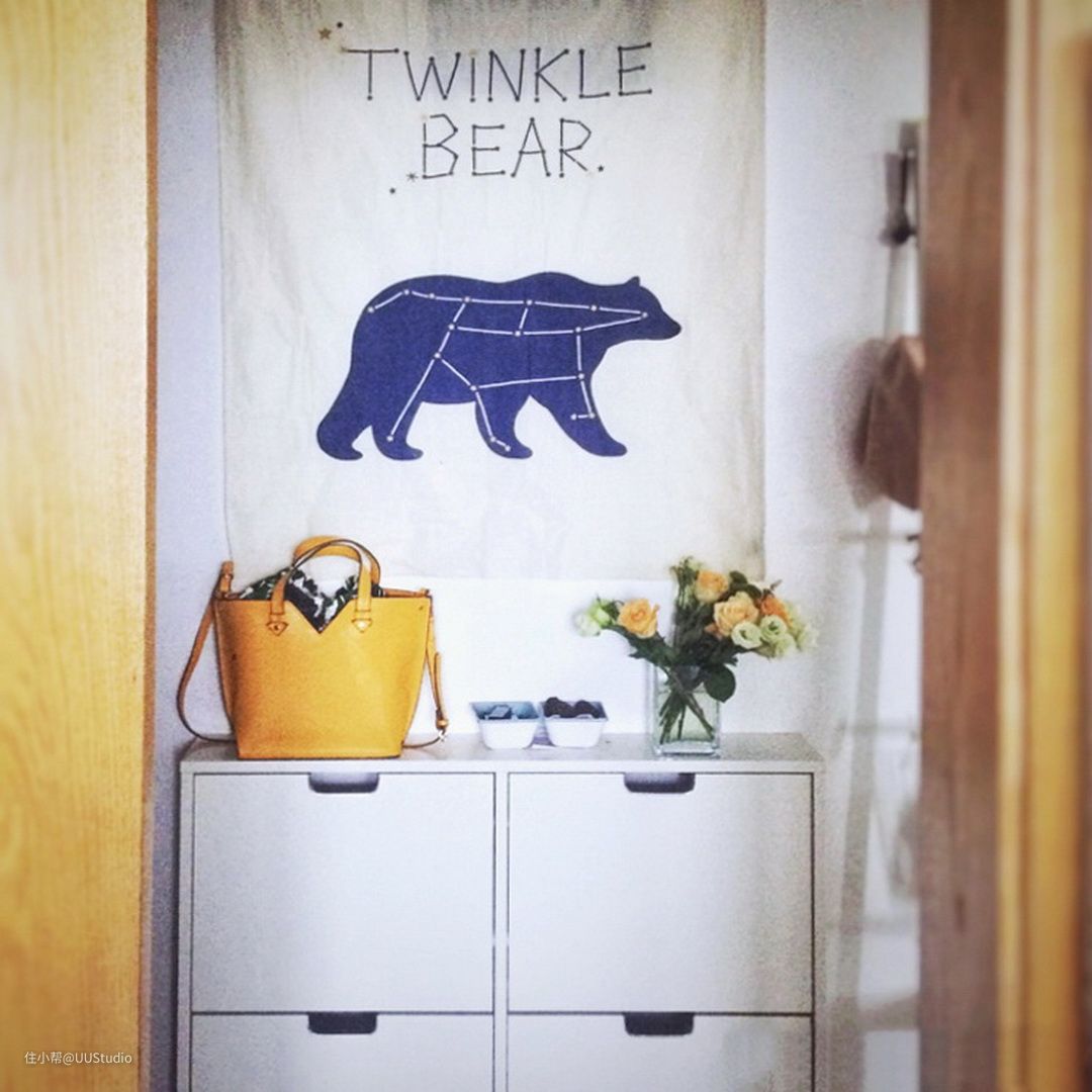 △ 最早,选择较薄的「IKEA」“斯多尔 四门鞋柜”,电箱处用「Morden House」北欧风格挂帘遮挡。挂帘太薄,电箱若隐若现。钥匙就用「IKEA」“瓦瑞拉 盒子”简单放置。(但还是想说,「IKEA」真的是性价比之光。)