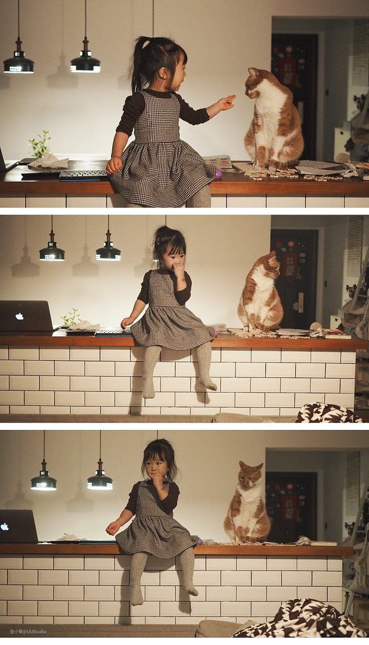 △ 相比较普通工作台,我更喜欢在吧台办公,随时可以站起来扭扭胳膊转转脖子。UU 也喜欢把吧台当作她攀岩的目标。(危险!小朋友切勿模仿!我可能是别人家的妈妈~🤷 )