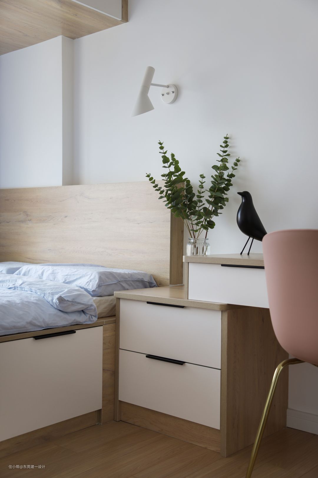 整体搭配以原木色+白色,营造整体性。