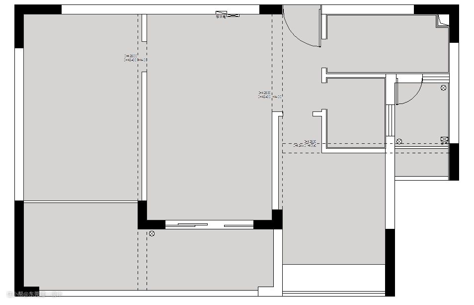 原户型是规矩的小2房结构,户型痛点在于: