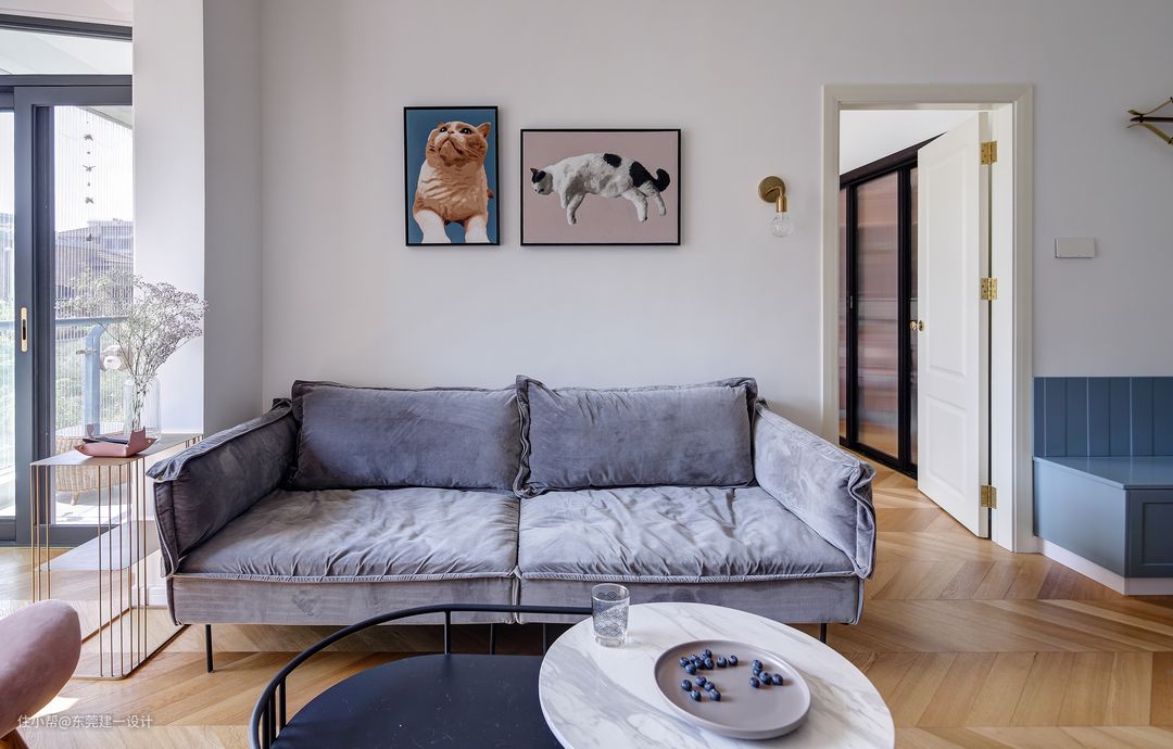 这是一个四口两猫之家,业主为了2个宝贝女儿上学,把家搬到了这个学区房。他们对于新家的期望很高,这个是一套朝向很好的小2房,有大大的南向阳台,在冬日里特别的温暖。设计的难点在于小户型如何满足一家人的生活起居,还有2个宝贝的日常生活学习,我们把空间重新整理,按照他们的生活习惯,收纳需求,重新规划设计,用灰粉和灰蓝,为他们打造了一个舒心的阳光暖家。
