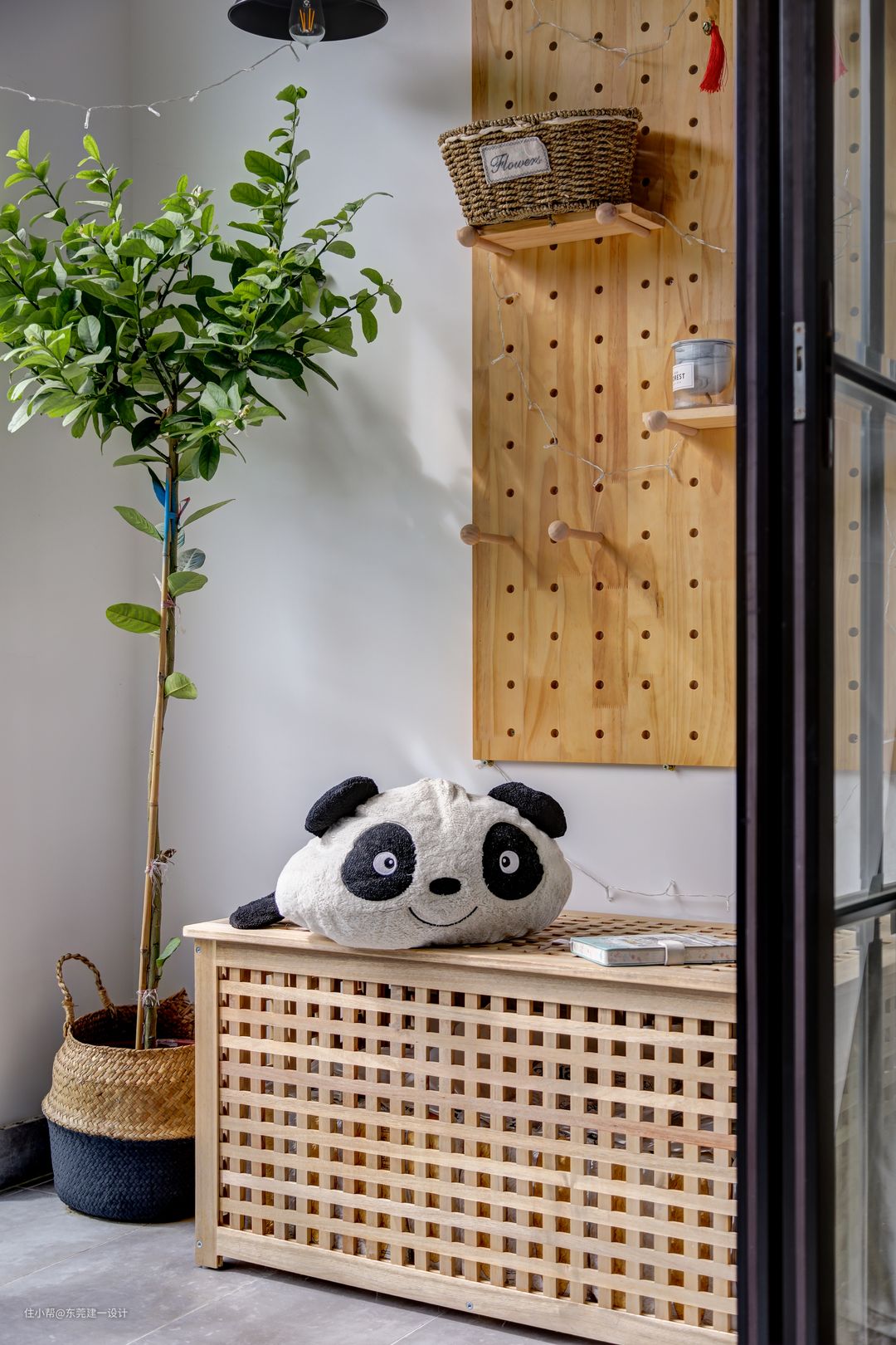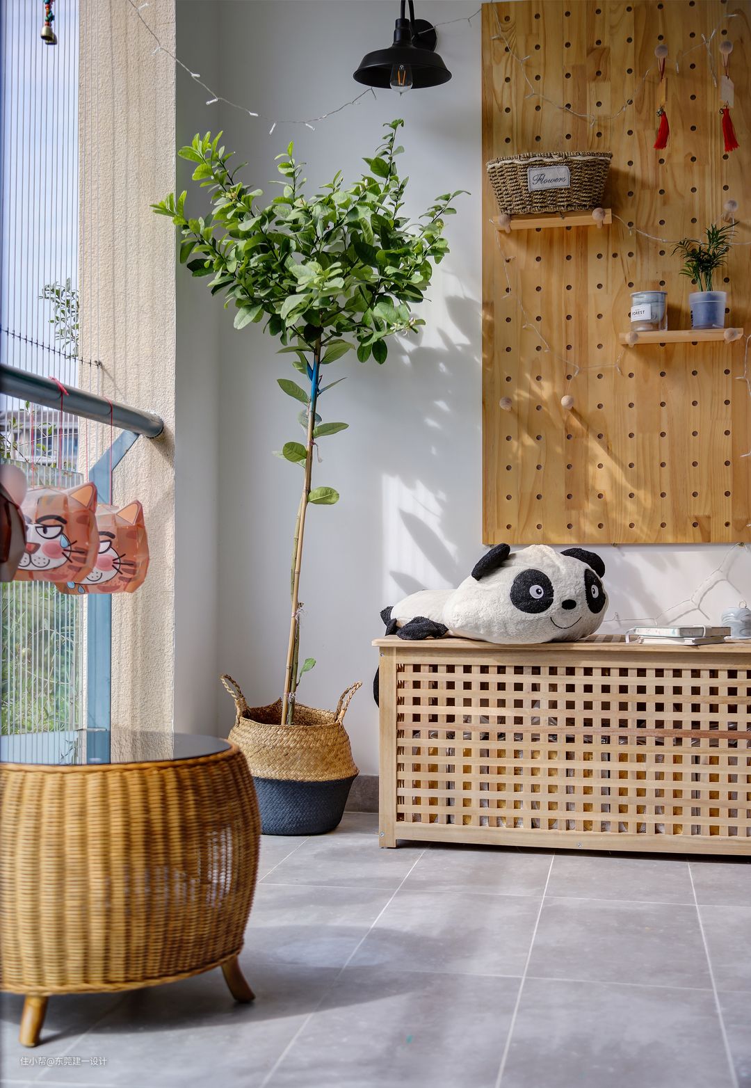 灰粉的背景搭配原木,合着充满冬日阳光的阳台,感受着春夏秋冬的美好