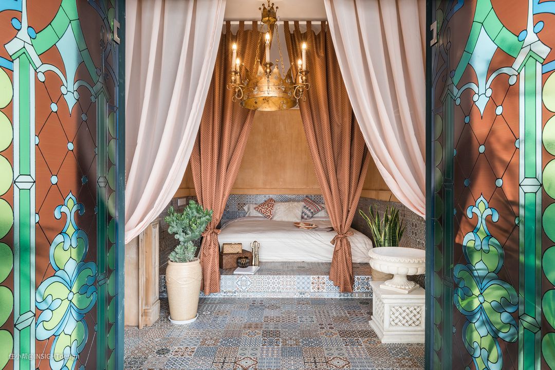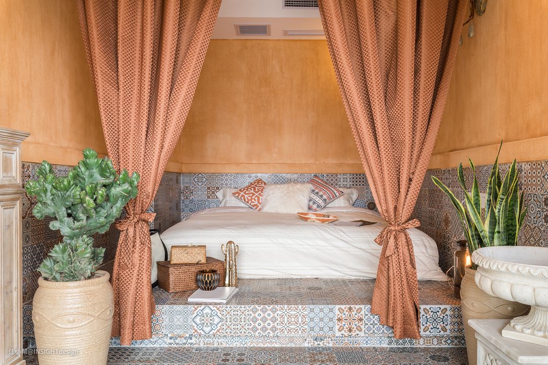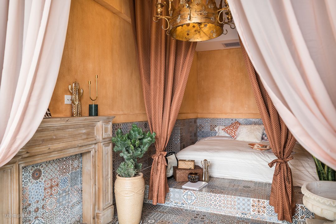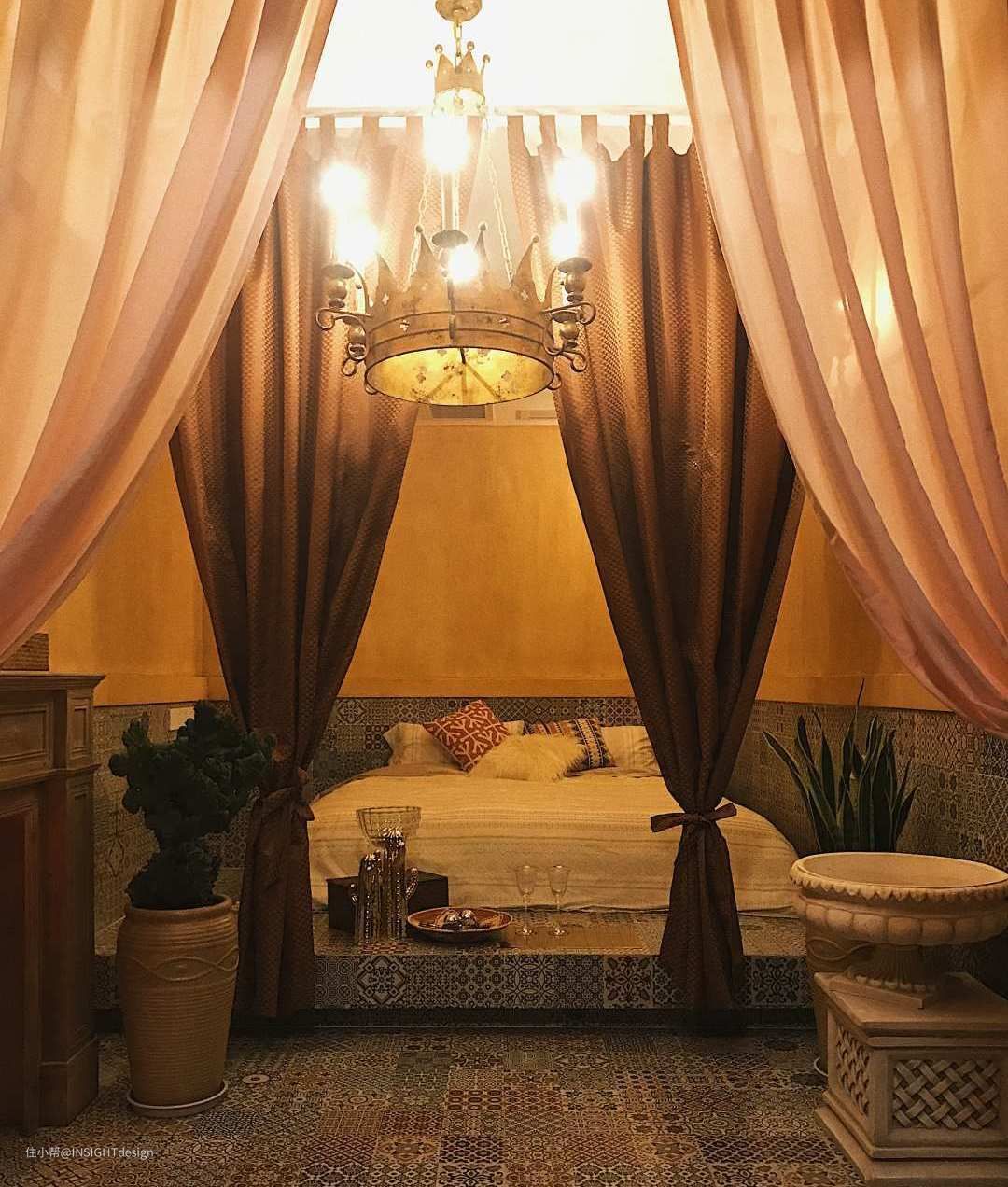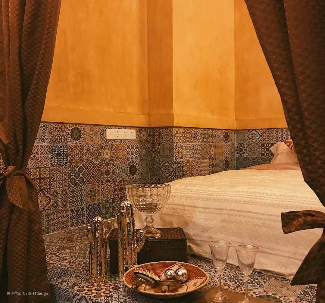 在业主的需求上加入了婧哥的扩展,为了实现摩洛哥式体验感!单从地理环境分析来了解,摩洛哥位于非洲西北端,东接阿尔及利亚,南部为撒哈拉沙漠,这么一看来,捻取了一小部分,从沙漠这个点散发,结合天气-部分地域,走了橘色的调子,再用同色系软装及其主材的为其主题做搭配,恰巧空间小,特别能把小情怀的调性体现出来。开门即面朝南滨路的夜景。