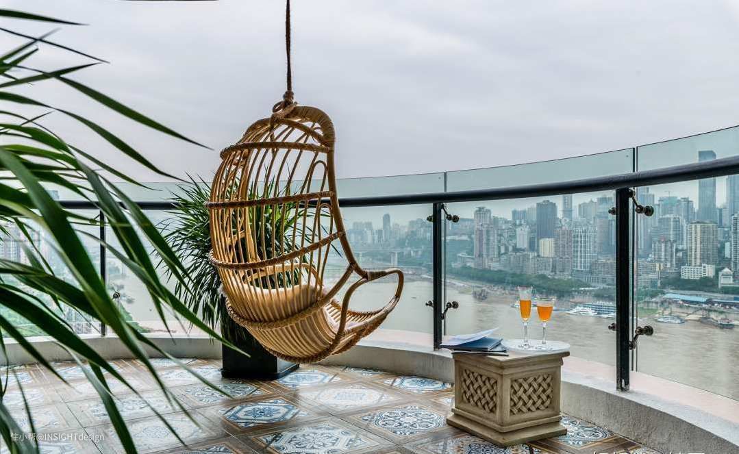 拥有一个大的景观阳台在加上搭了一个吊椅。