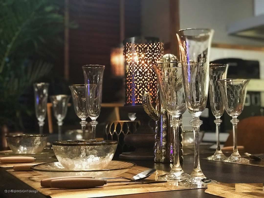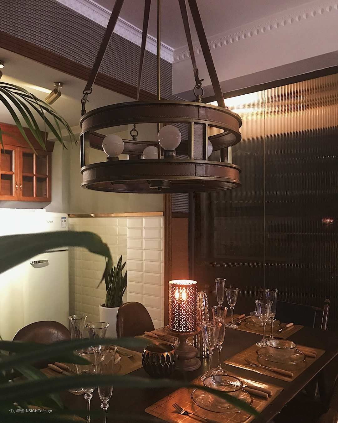 进客厅就能看到陈列背景展示,从捷克人肉带回的香槟红酒杯,深圳展会寻觅的装饰品,自己设计做的家具,木制品。实际操作复古原味,用港式作为灵感引子,牵引出整个色调和所有的内置搭配,其中还用到了茶色的长虹玻璃,这个看不到后面的图,可以大家去发现一下