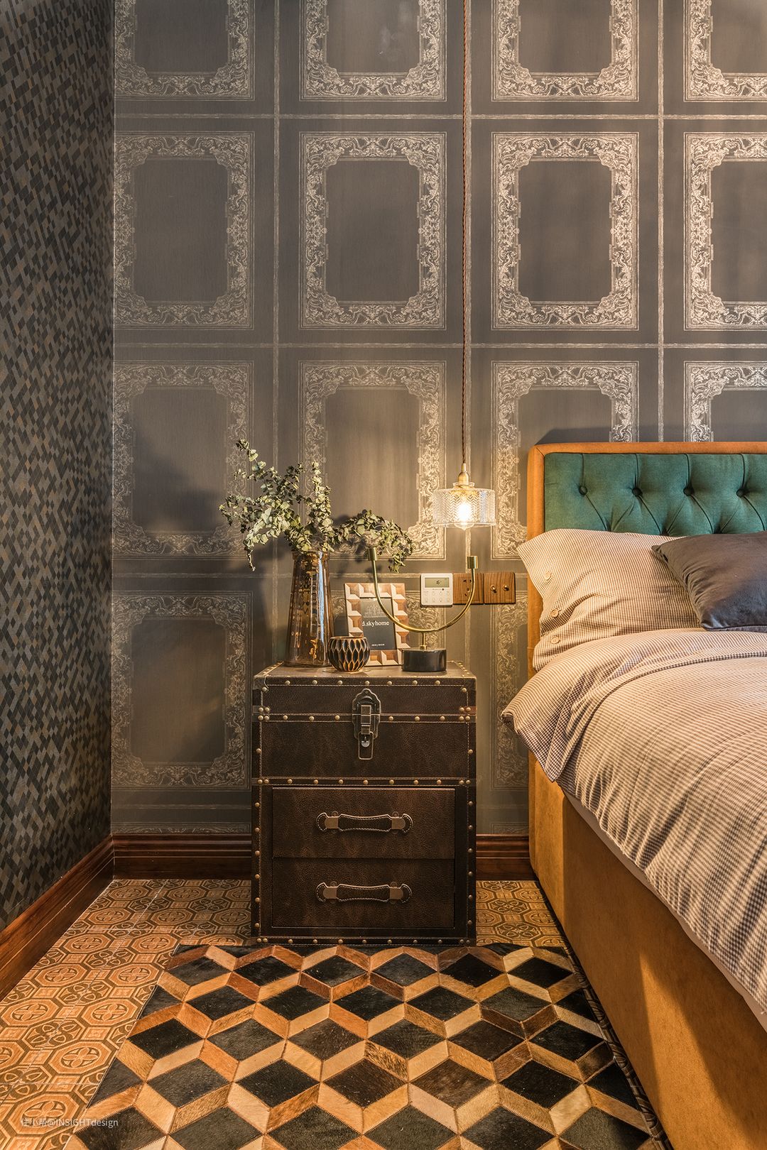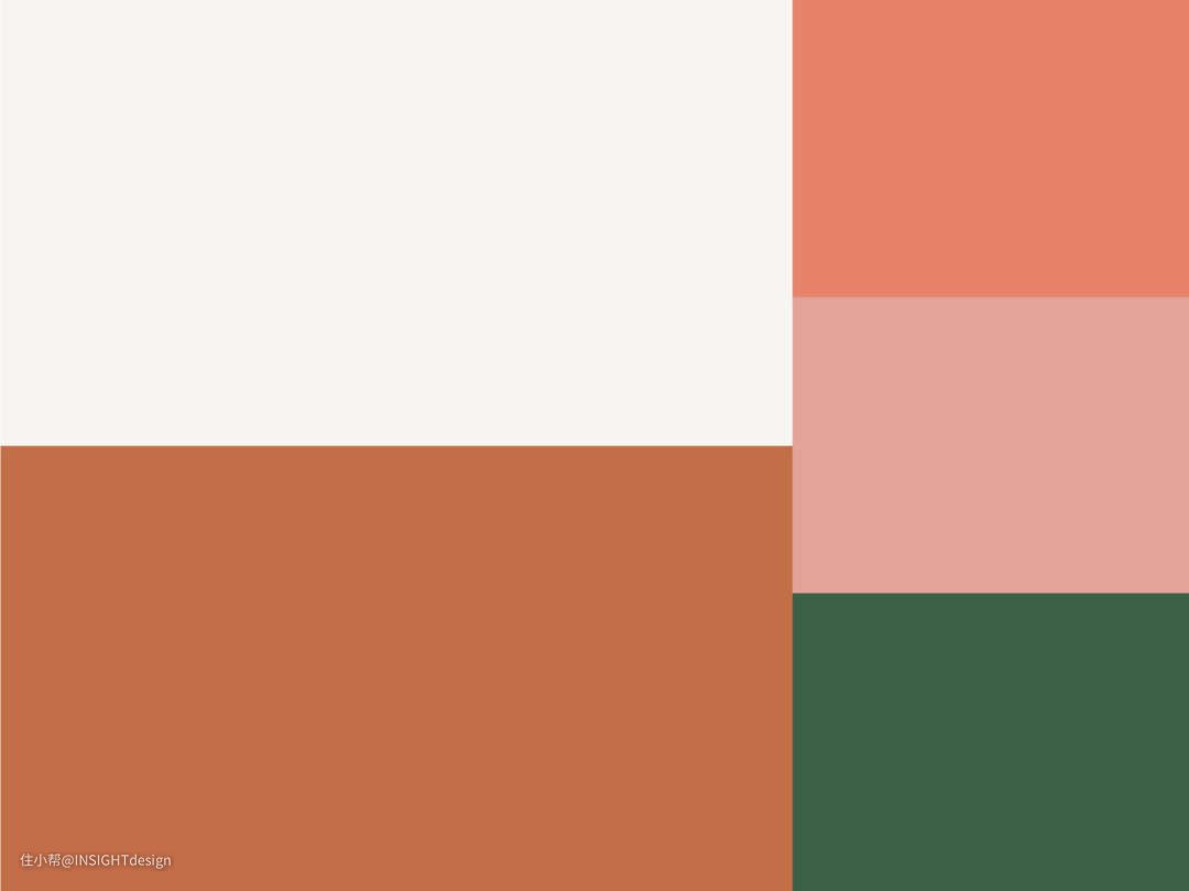 用到这个颜色搭配的时候,设计师婧哥是被电影【布达佩斯大饭店】里的火车内饰以及一些房间色彩洗了脑,因此找了点喜欢的元素搭配,那一整面的绿色,是在选材时发现的,元素有点像玛瑙花纹的,直接达到一个让人诧异的视觉,为了搭配效果,选了黄色搭配视觉冲击,其实怎么选择都不重要,通常被广大群众看不懂的,我们都可以用艺术来形容🙋🏼♀️ 主色;【深褐色】 提亮:【绿色+姜黄色】