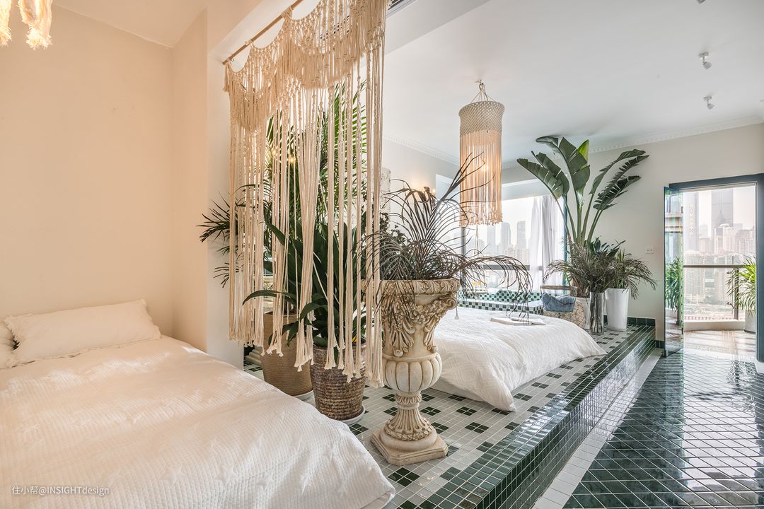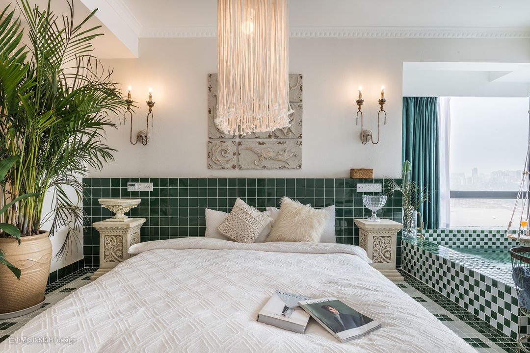 回味两分钟,在主材的选料真是焦够了,坎坷的心路历程。在有限的主材情况下、去挖掘适合的主材的更多的可塑性!烧脑随时进行着~最终在各种困难下,保全!延续!高仿—摩洛哥风情的另一面,置身于大自然的鬼斧神工之地。植物➕迷你游泳池的两大特色,为整个房间创造了超乎想象的惊喜。并且此定位两大主要色系,绿色➕白色作为贯穿整个空间的主体灵魂。很符合摩洛哥那万人为此倾倒的风格,池边就是南滨路的大夜景,视觉冲击力还是比较强。