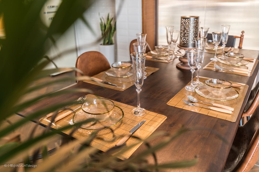 亮点介绍:餐厅旁的胡桃木百叶,为了迎接阳台进入到家里而准备的。拒绝阳光我一直以来就觉得很可惜,充分利用一进门的餐厅玻璃墙即是背景造型,又保留采光的优点