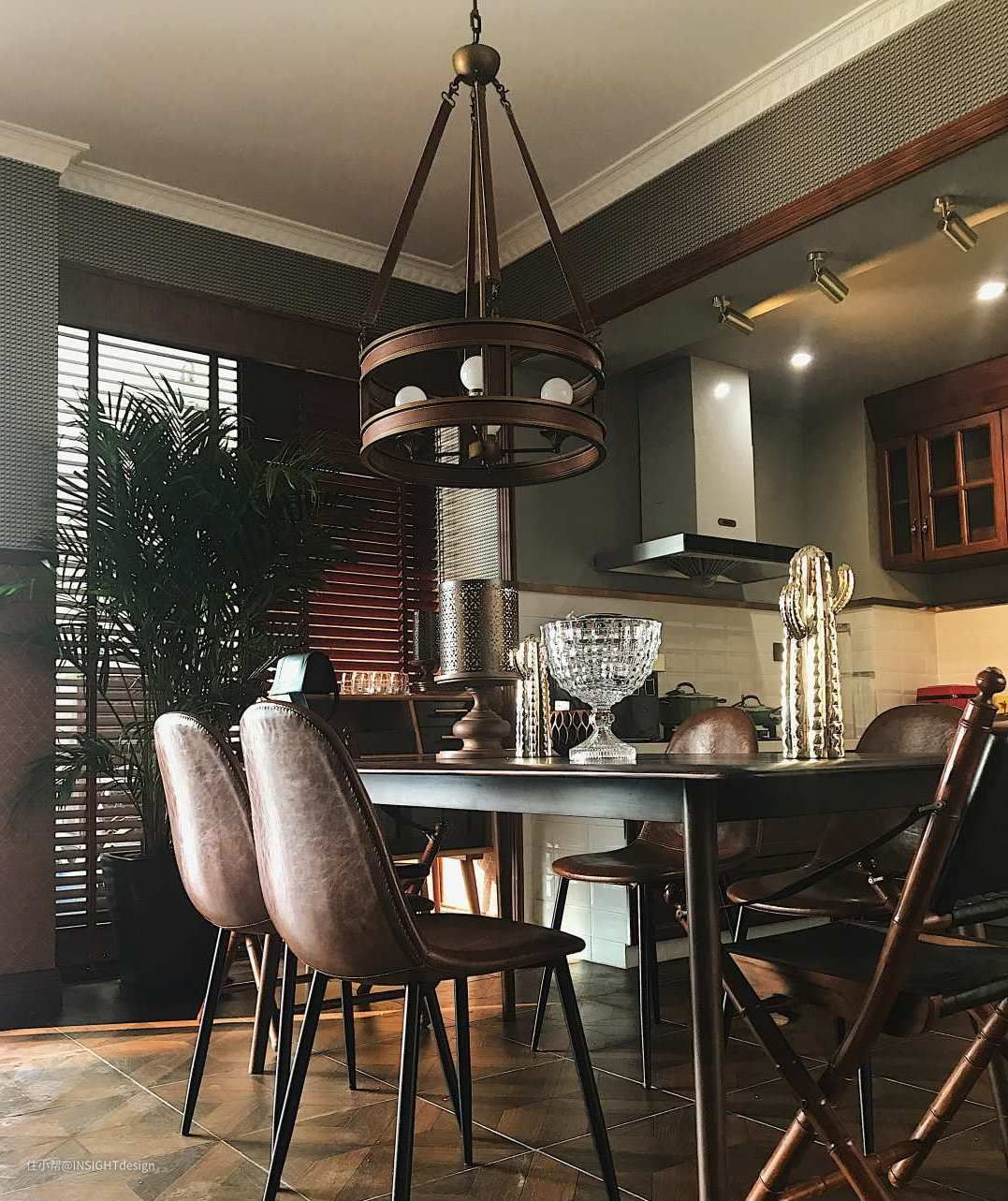 一个让人欲搭配红酒论故事的风格,做了和主客餐厅搭配的风格调子,让整个空间不会混乱,与之前发的两个房间的风格完全不同~对于重色的混搭。 主色;【纯黑加+深褐色】 提亮:【绿色+黄棕色】 比较稳重又不失掉独特。